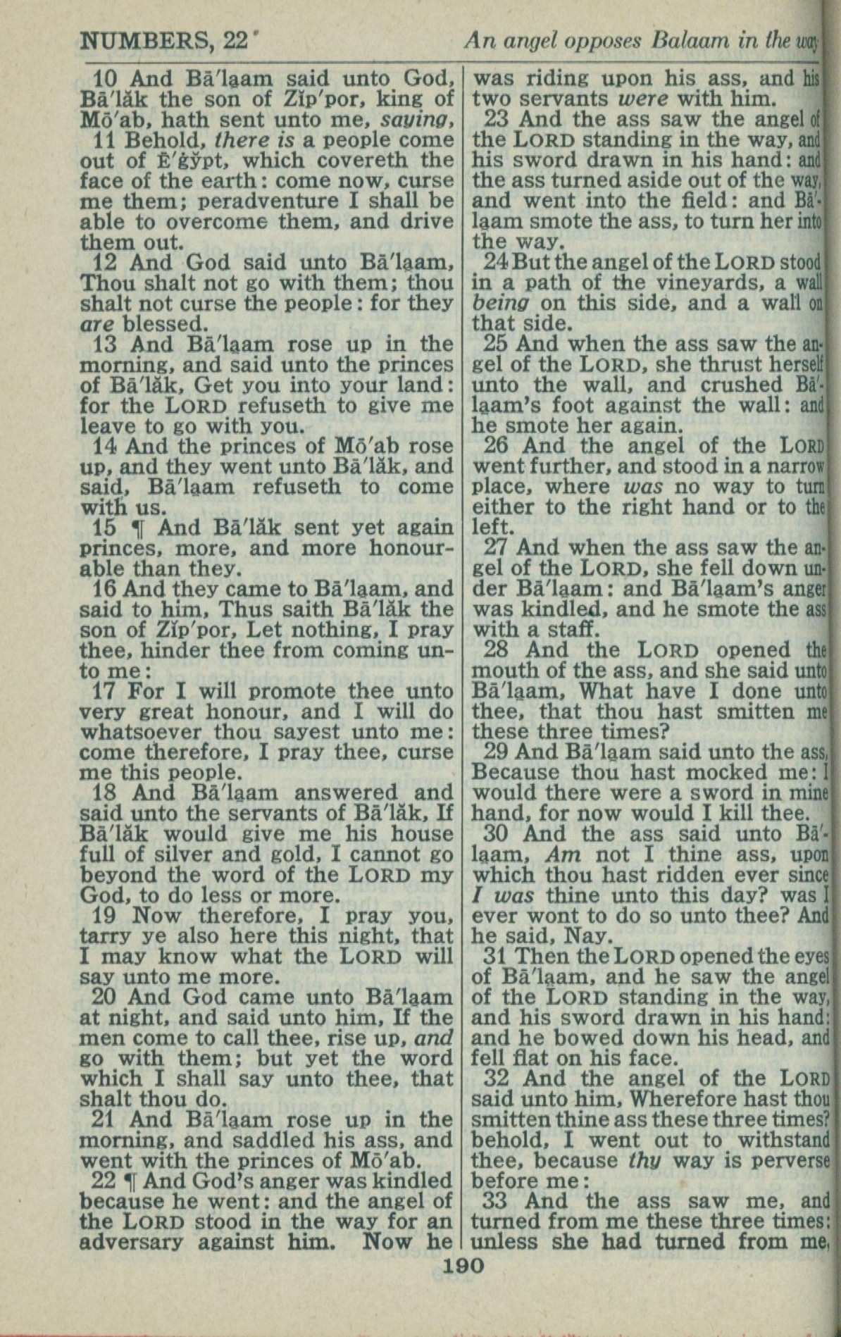 1946年King James Version 民數記 22 章 10 節到 22 章 33 節