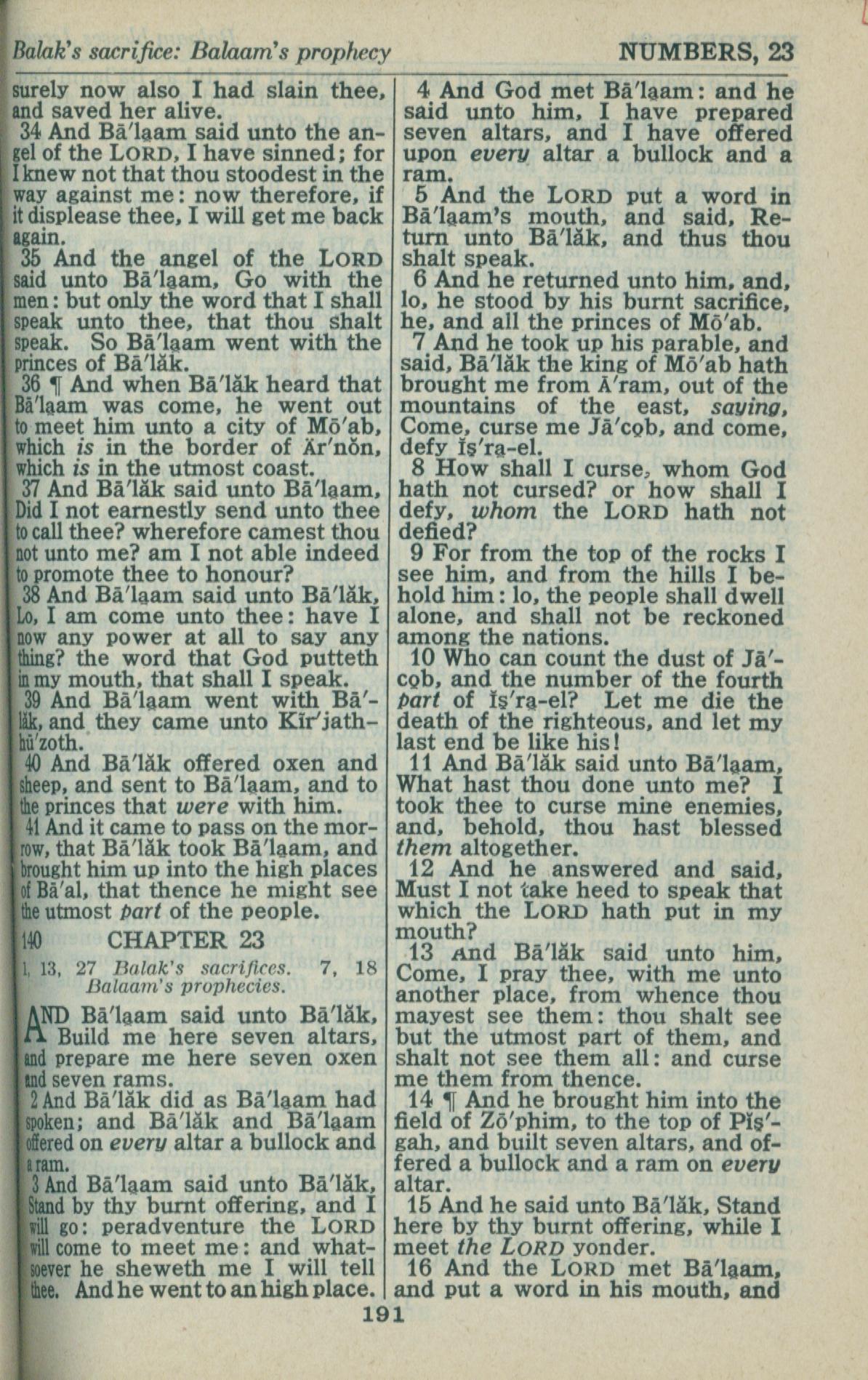 1946年King James Version 民數記 22 章 34 節到 23 章 16 節