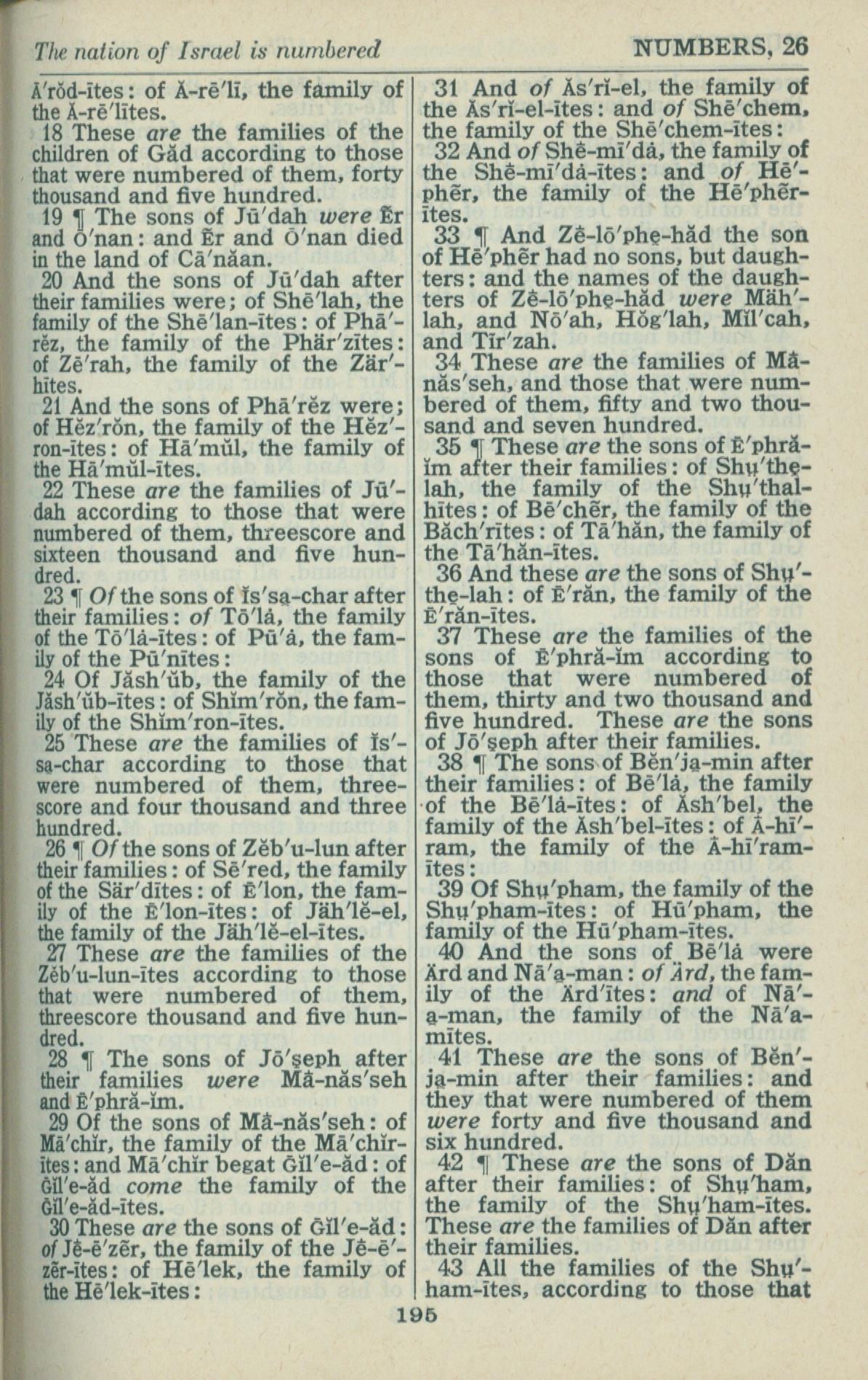 1946年King James Version 民數記 26 章 18 節到 26 章 43 節