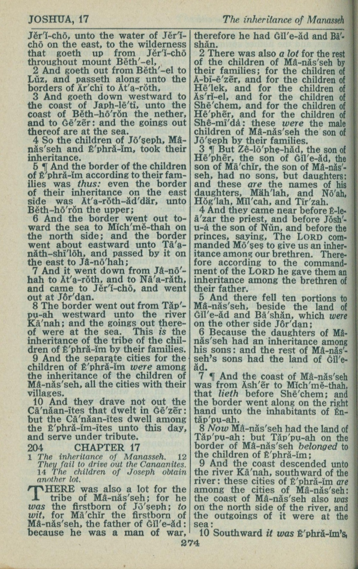 1946年King James Version 約書亞記 16 章 2 節到 17 章 10 節