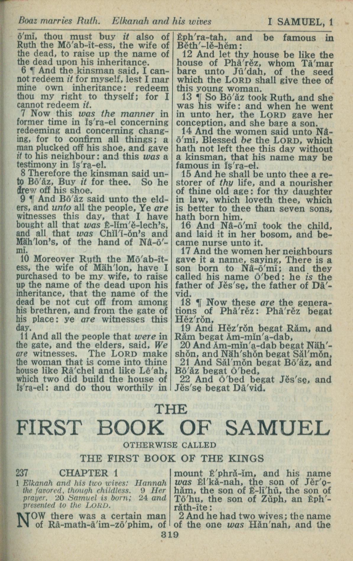 1946年King James Version 路得記 4 章 6 節到 4 章 22 節