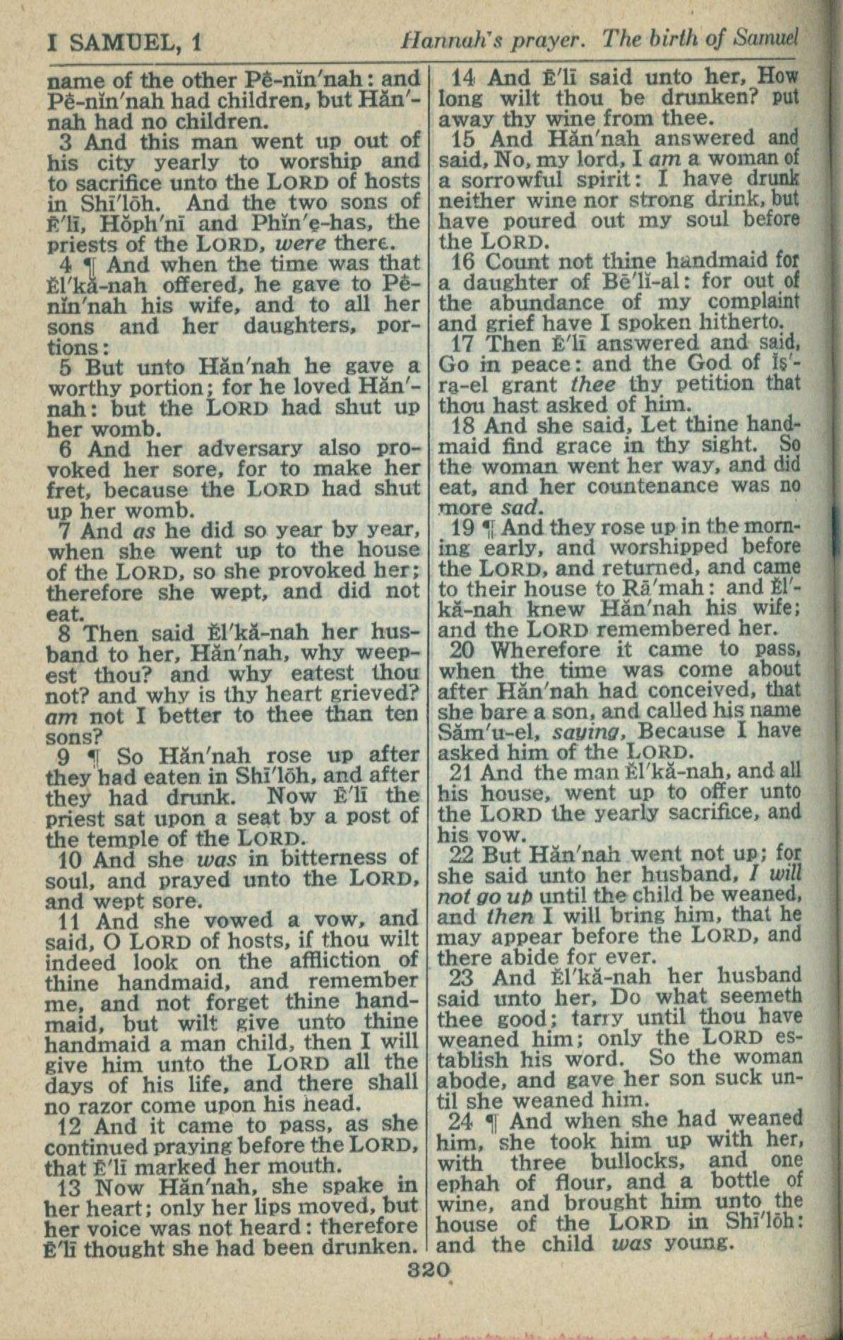 1946年King James Version 撒母耳記上 1 章 3 節到 1 章 24 節