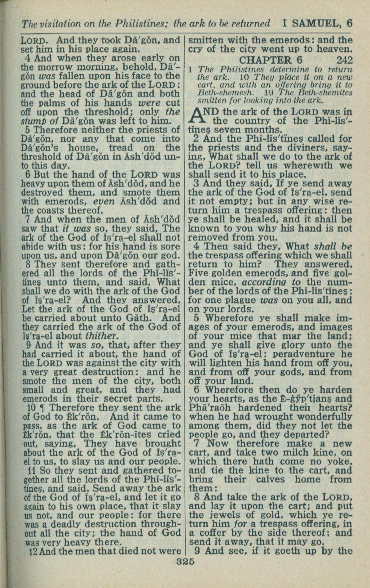 1946年King James Version 撒母耳記上 5 章 4 節到 6 章 9 節