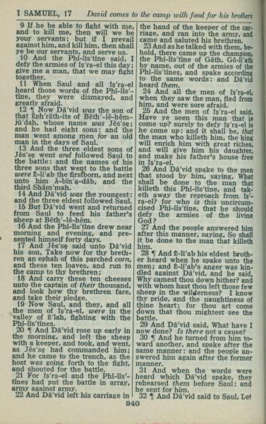 1946年King James Version 撒母耳記上 17 章 9 節到 17 章 32 節