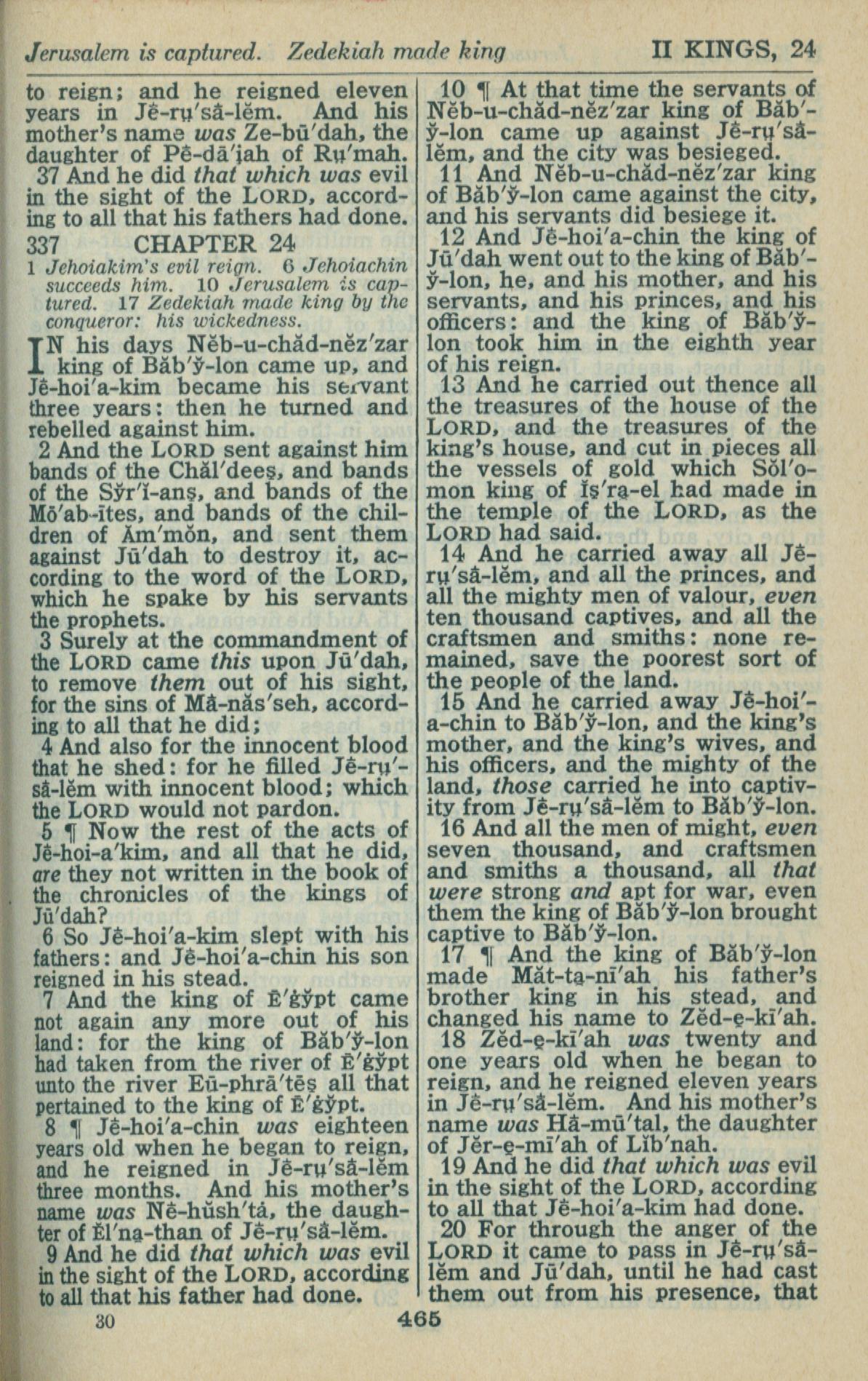1946年King James Version 列王紀下 23 章 37 節到 24 章 20 節