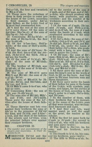 1946年King James Version 歷代志上 24 章 19 節到 25 章 12 節