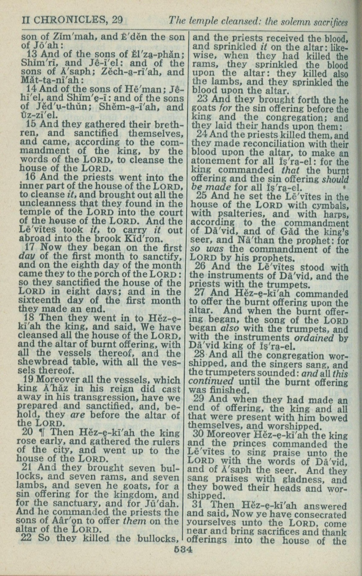 1946年King James Version 歷代志下 29 章 13 節到 29 章 31 節