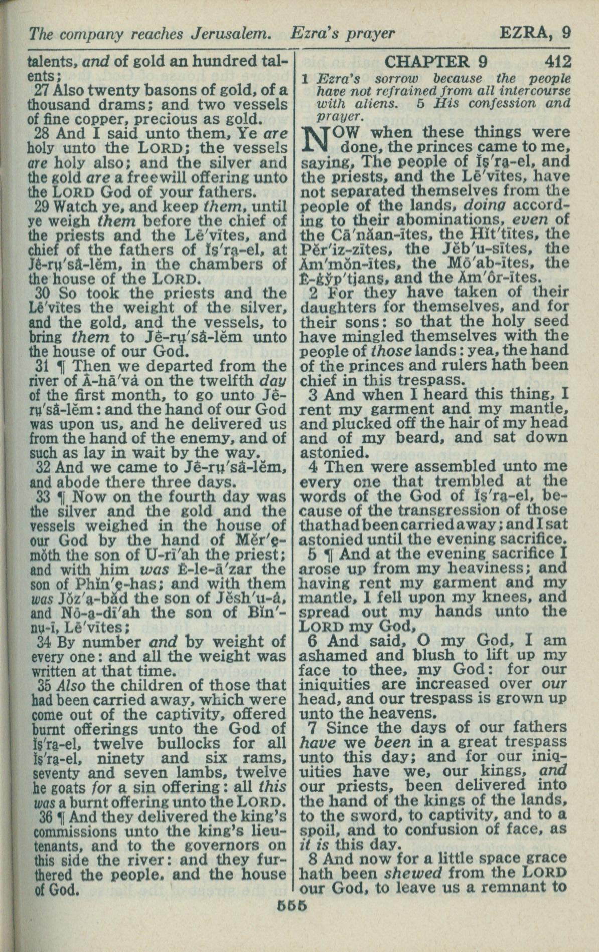 1946年King James Version 以斯拉記 8 章 27 節到 9 章 8 節