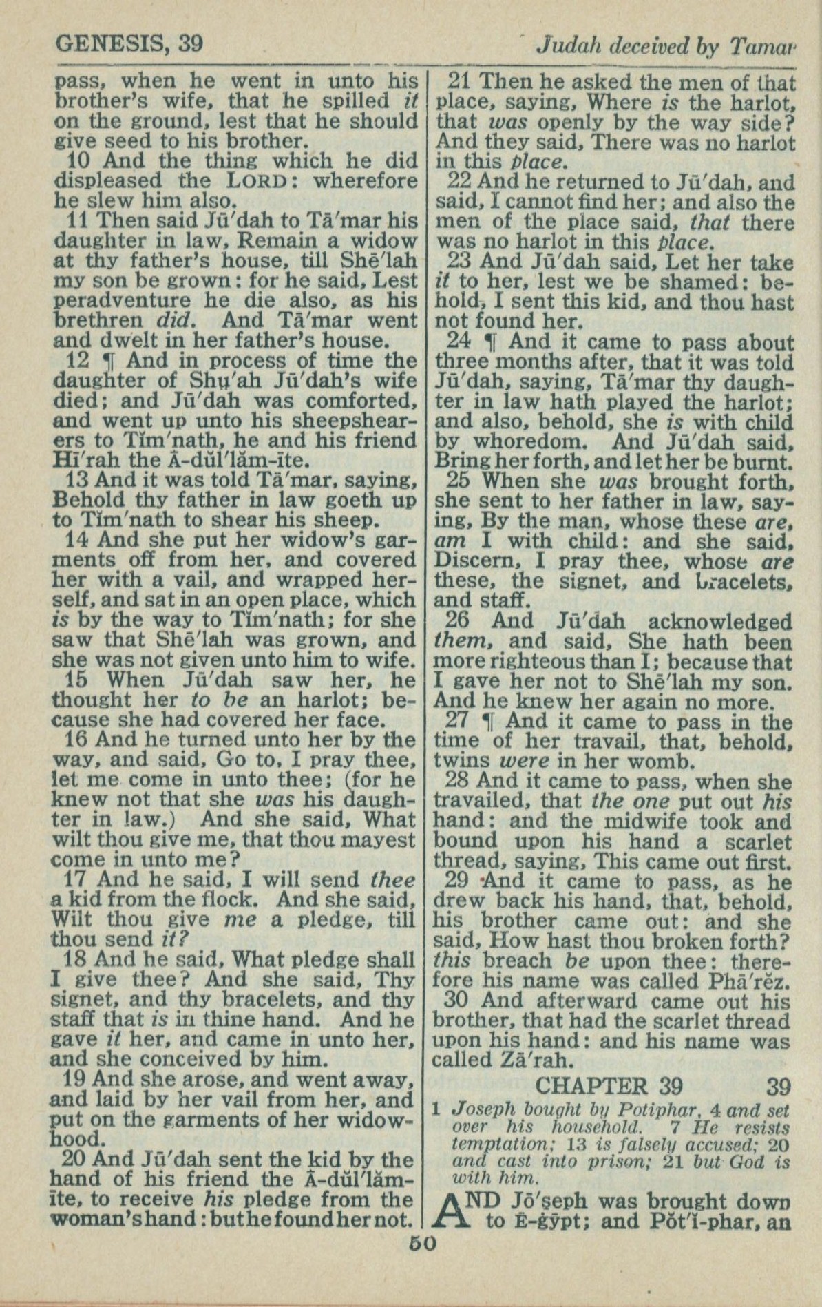 1946年King James Version 創世記 38 章 10 節到 39 章 1 節