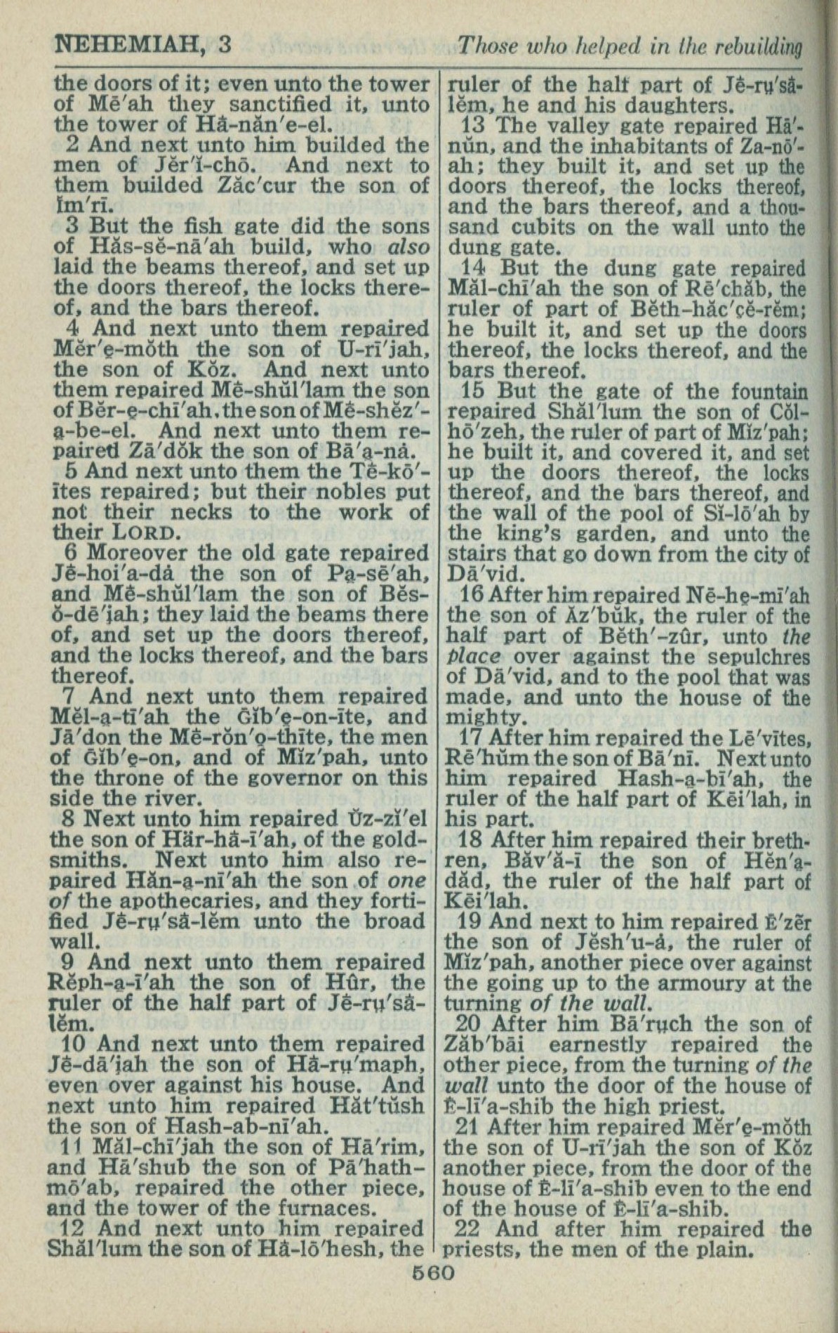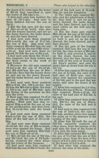 1946年King James Version 尼希米記 3 章 2 節到 3 章 22 節