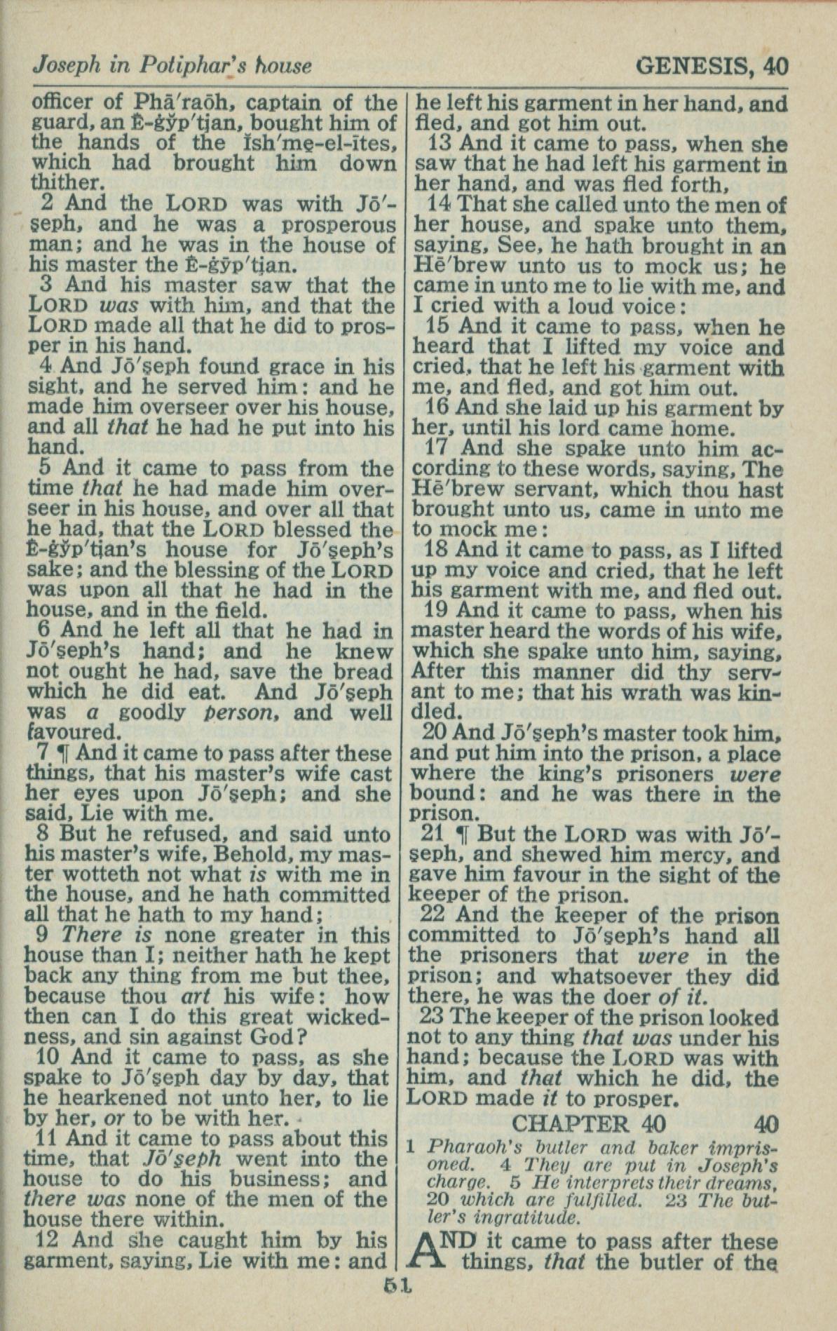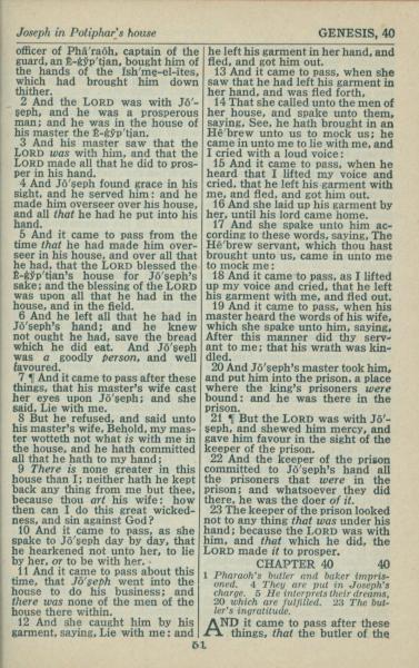 1946年King James Version 創世記 39 章 2 節到 40 章 1 節