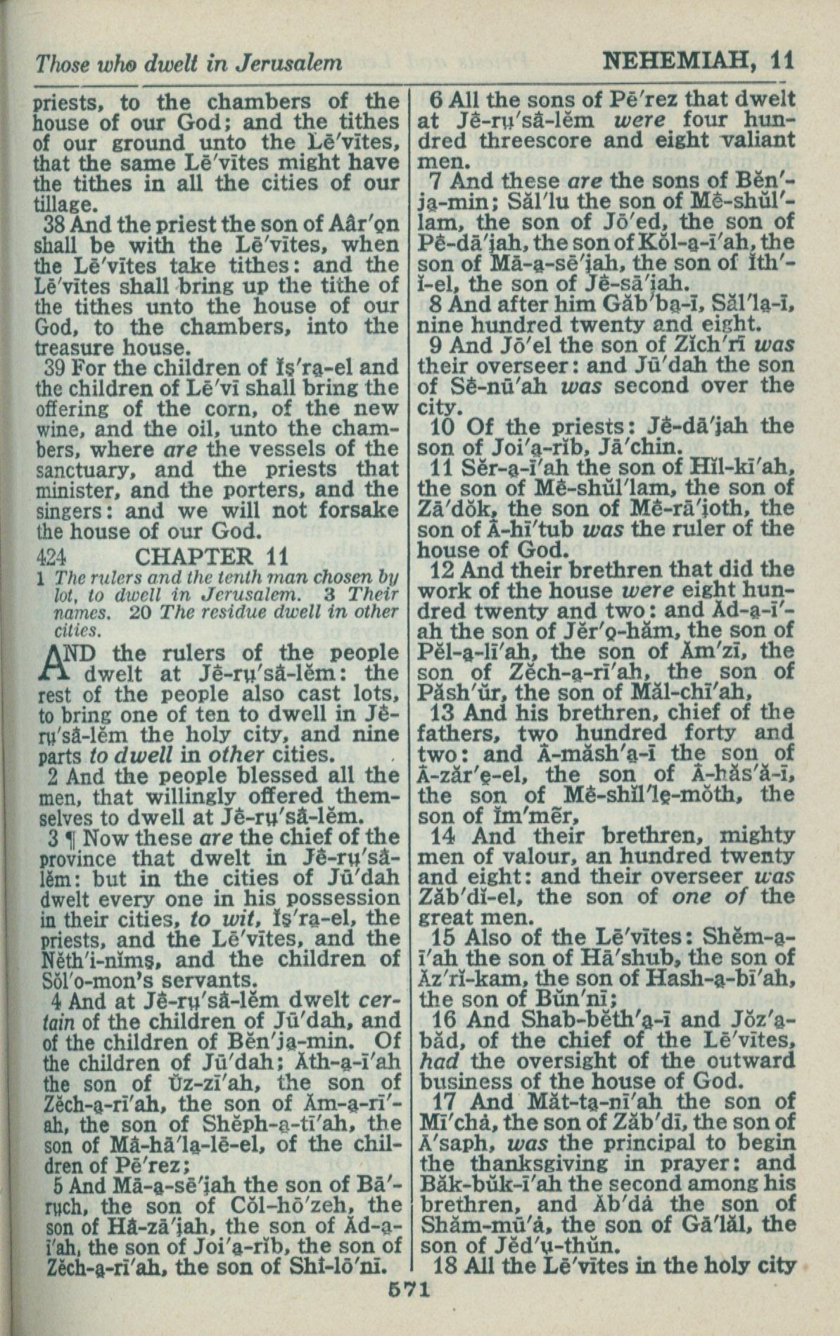 1946年King James Version 尼希米記 10 章 38 節到 11 章 18 節