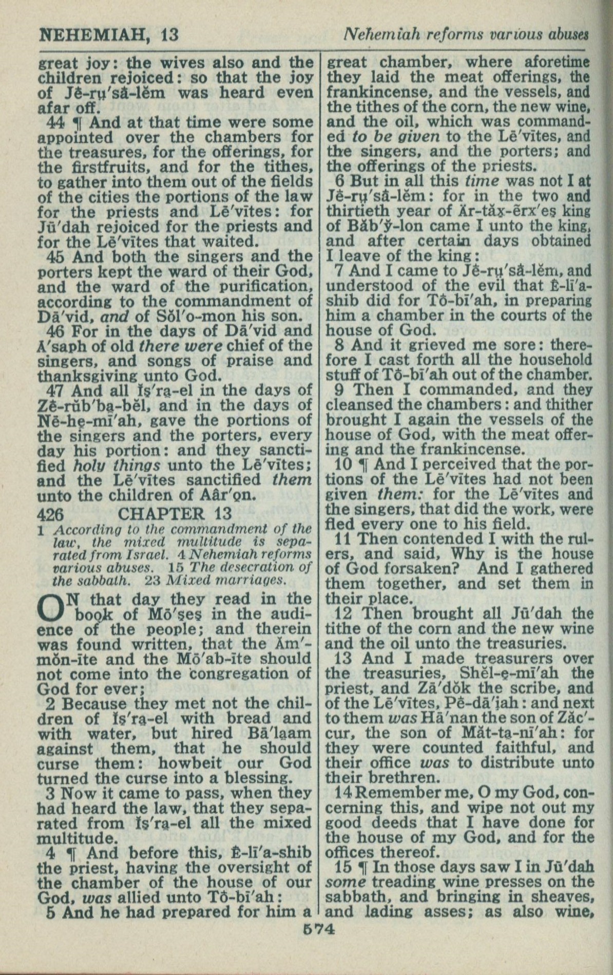 1946年King James Version 尼希米記 12 章 44 節到 13 章 15 節