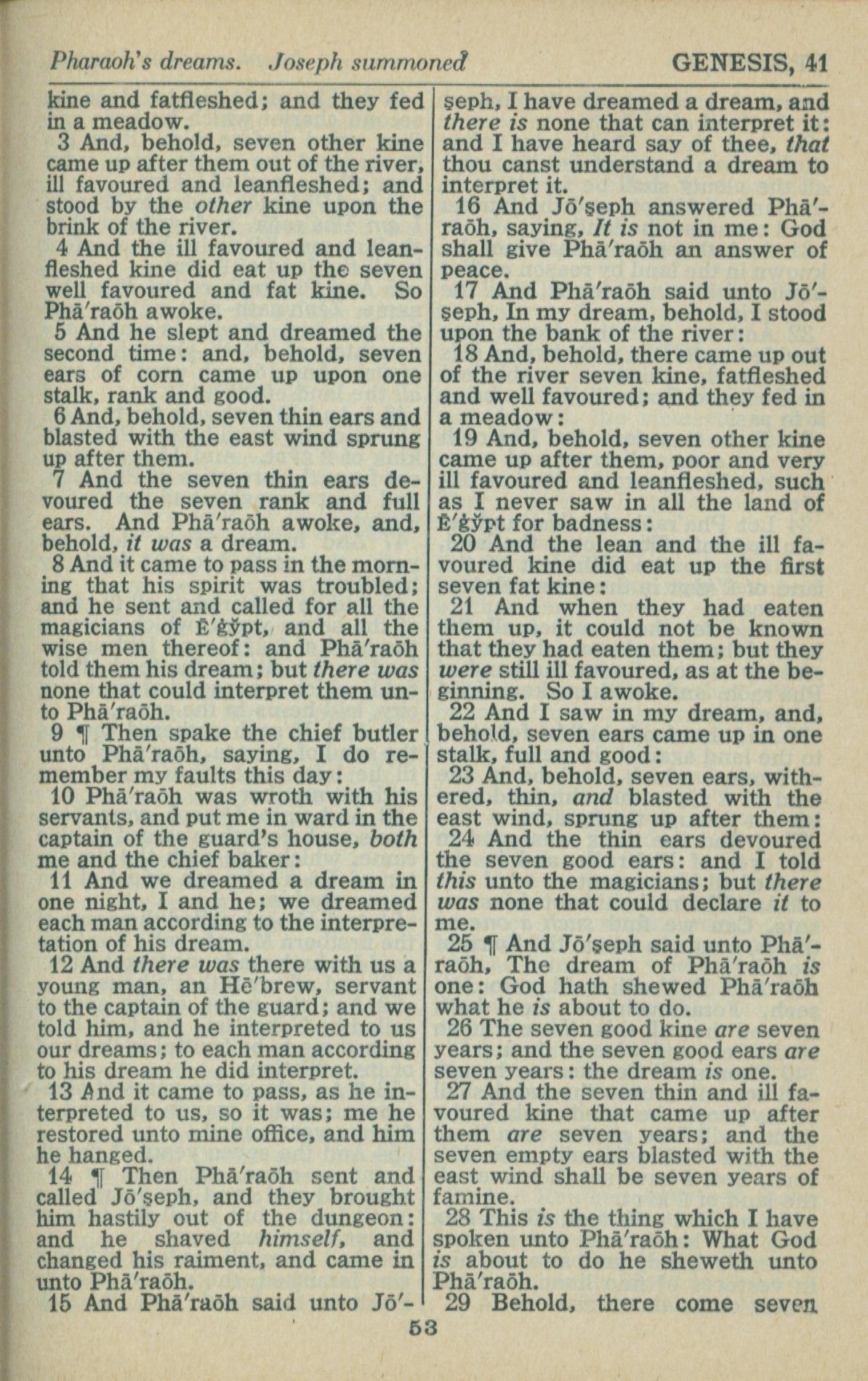 1946年King James Version 創世記 41 章 3 節到 41 章 29 節