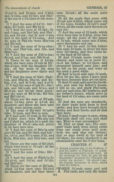 1946年King James Version 創世記 46 章 11 節到 47 章 1 節