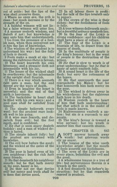 1946年King James Version 箴言 14 章 4 節到 15 章 5 節