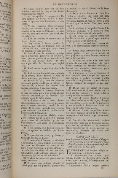 1858年La Biblia 創世記 42 章 11 節到 43 章 3 節