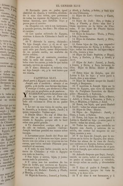 1858年La Biblia 創世記 45 章 23 節到 46 章 31 節