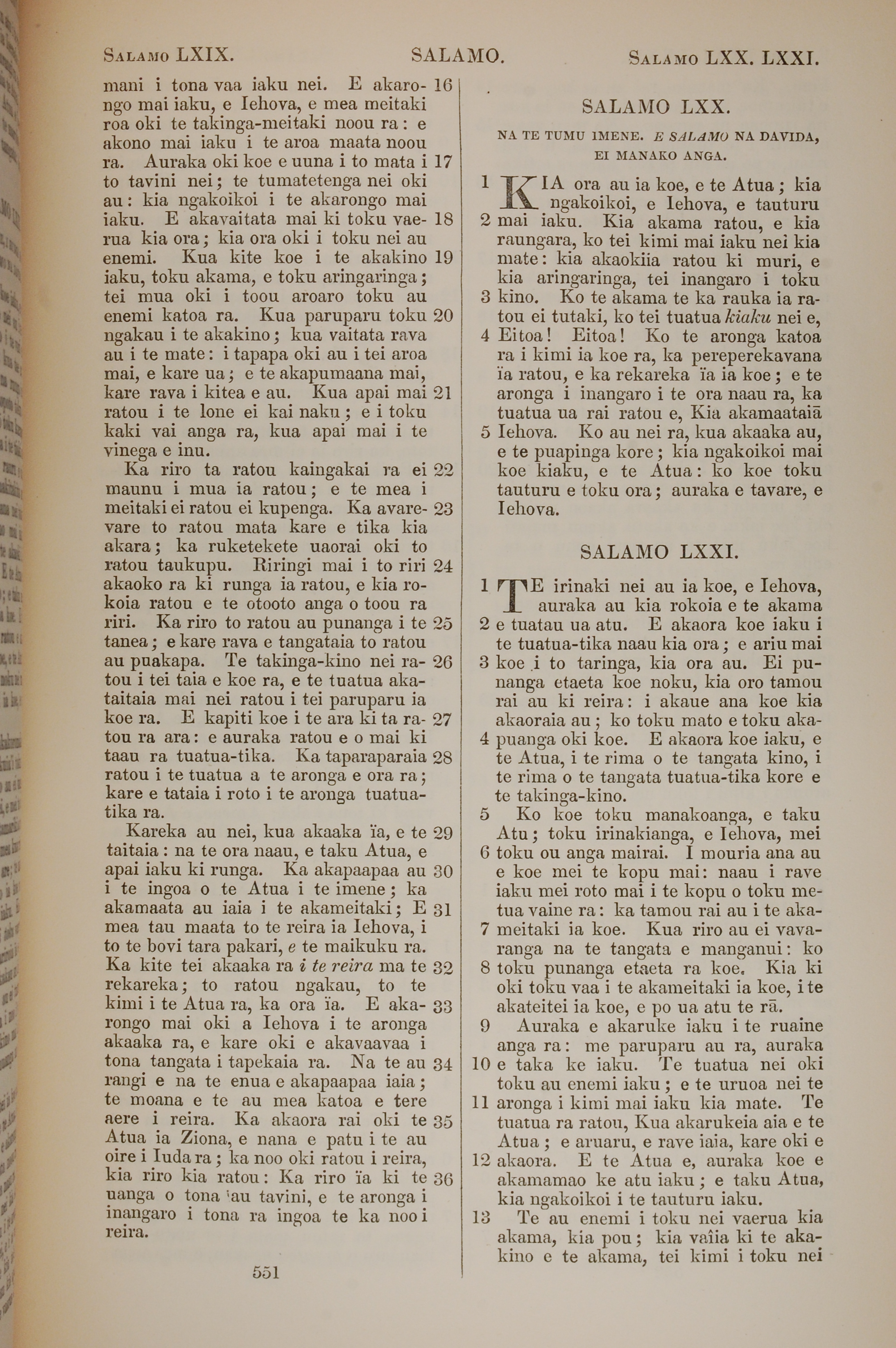 1851年BIBILA TAPU RA 詩篇 69 章 16 節到 71 章 13 節