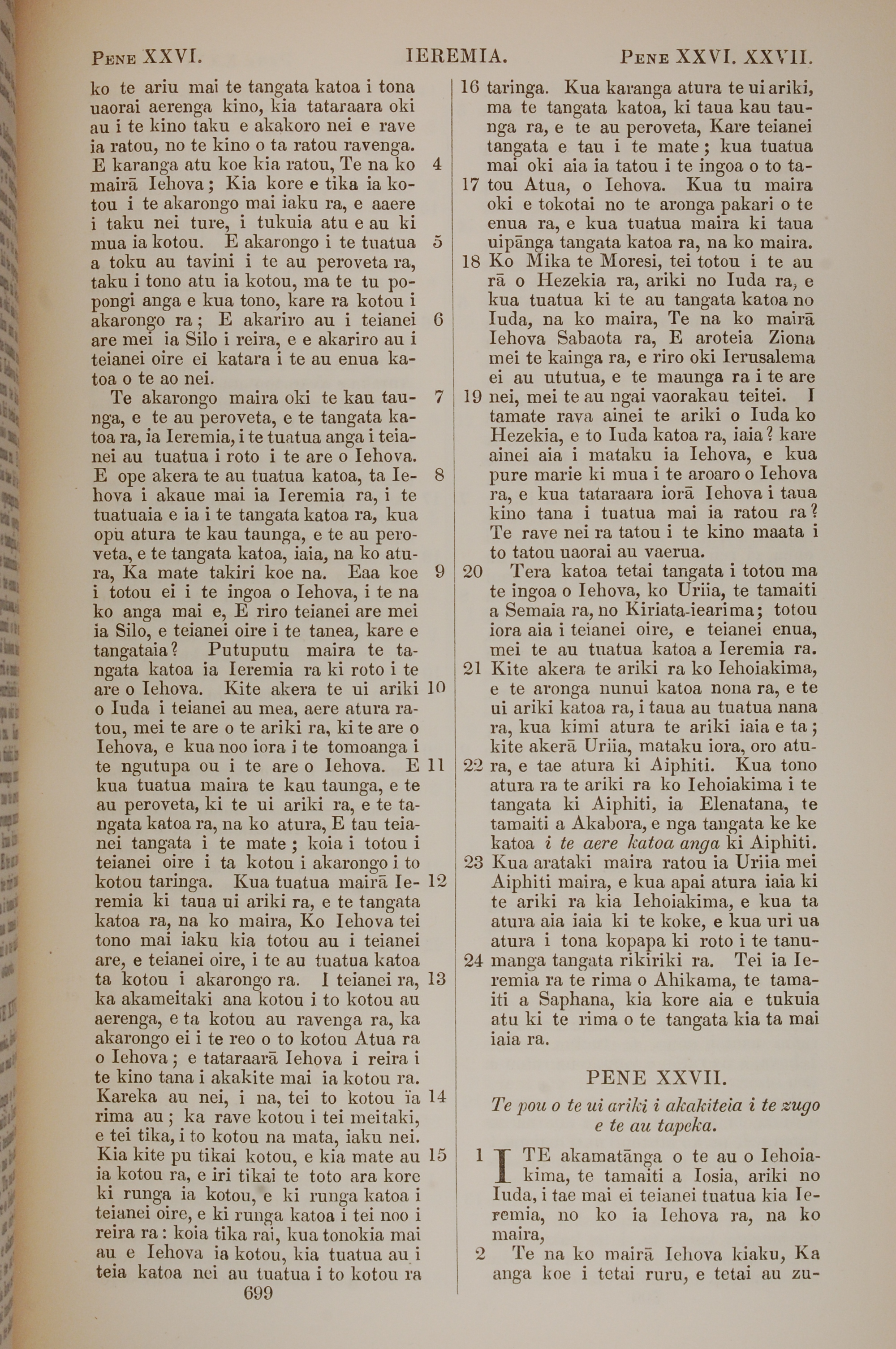 1851年BIBILA TAPU RA 耶利米書 26 章 4 節到 27 章 2 節