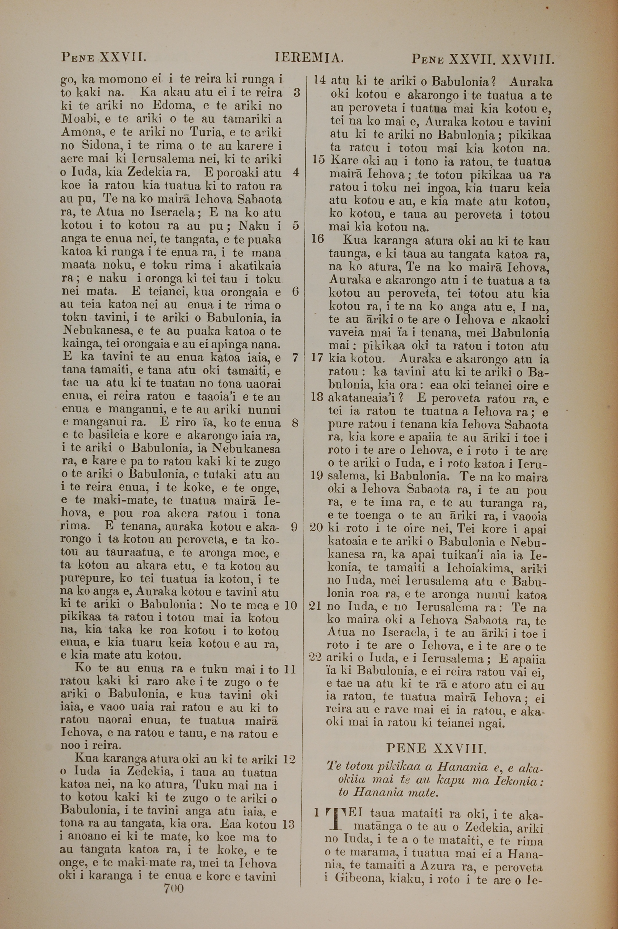1851年BIBILA TAPU RA 耶利米書 27 章 3 節到 28 章 1 節