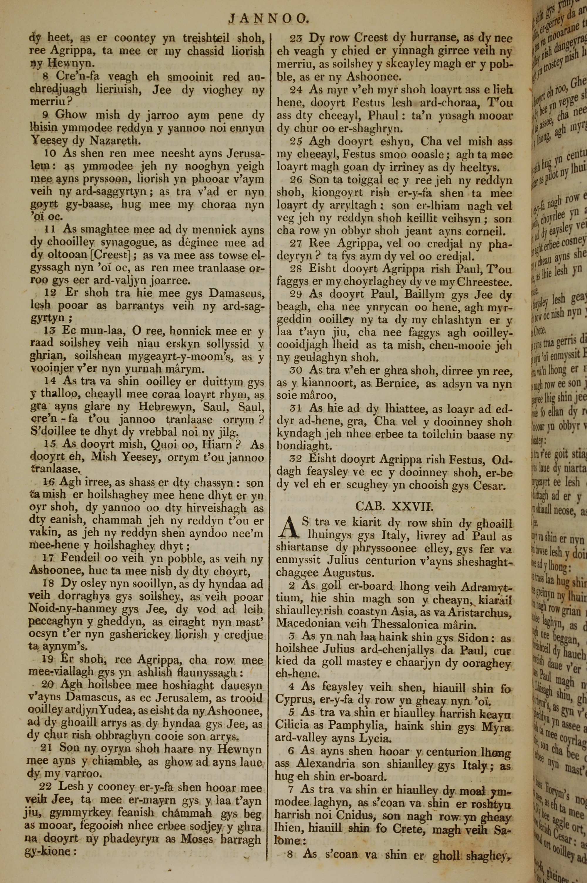 1819年曼島語聖經 使徒行傳 26 章 8 節到 27 章 8 節