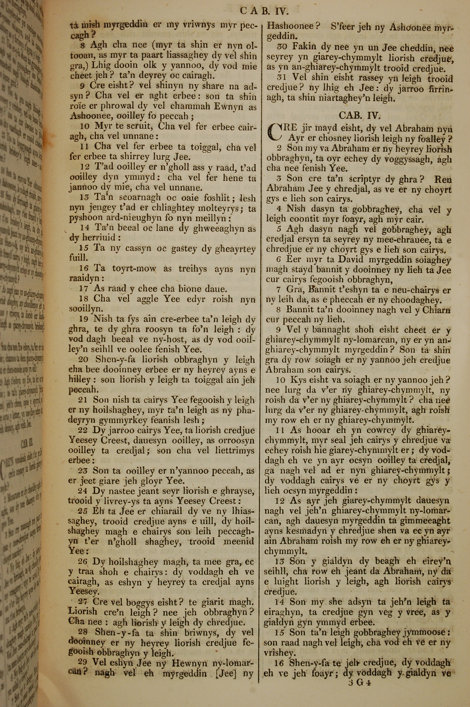 1819年曼島語聖經 羅馬書 3 章 8 節到 4 章 16 節
