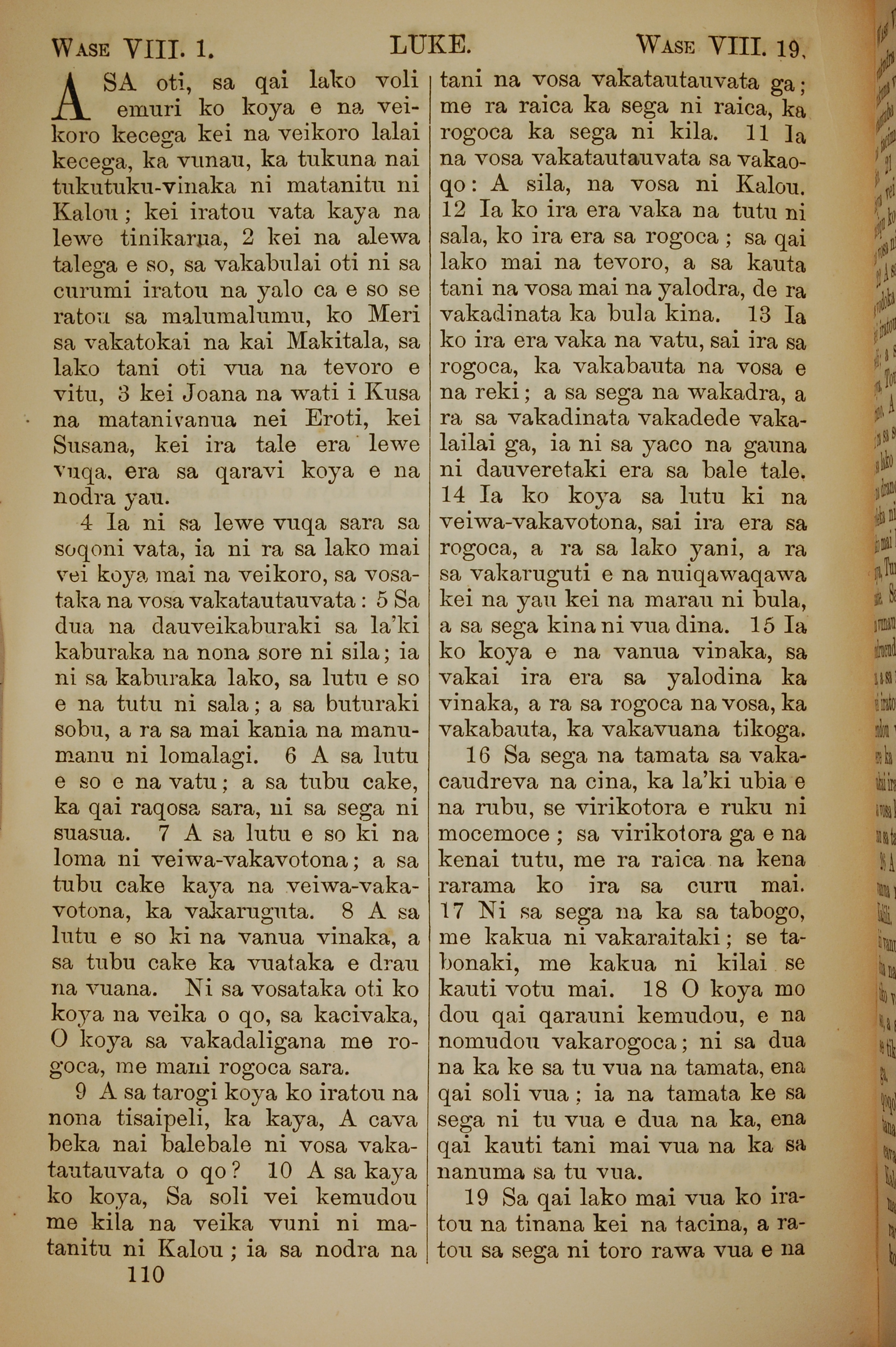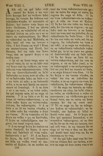 1858年斐濟文新約全書 路加福音 8 章 1 節到 8 章 19 節