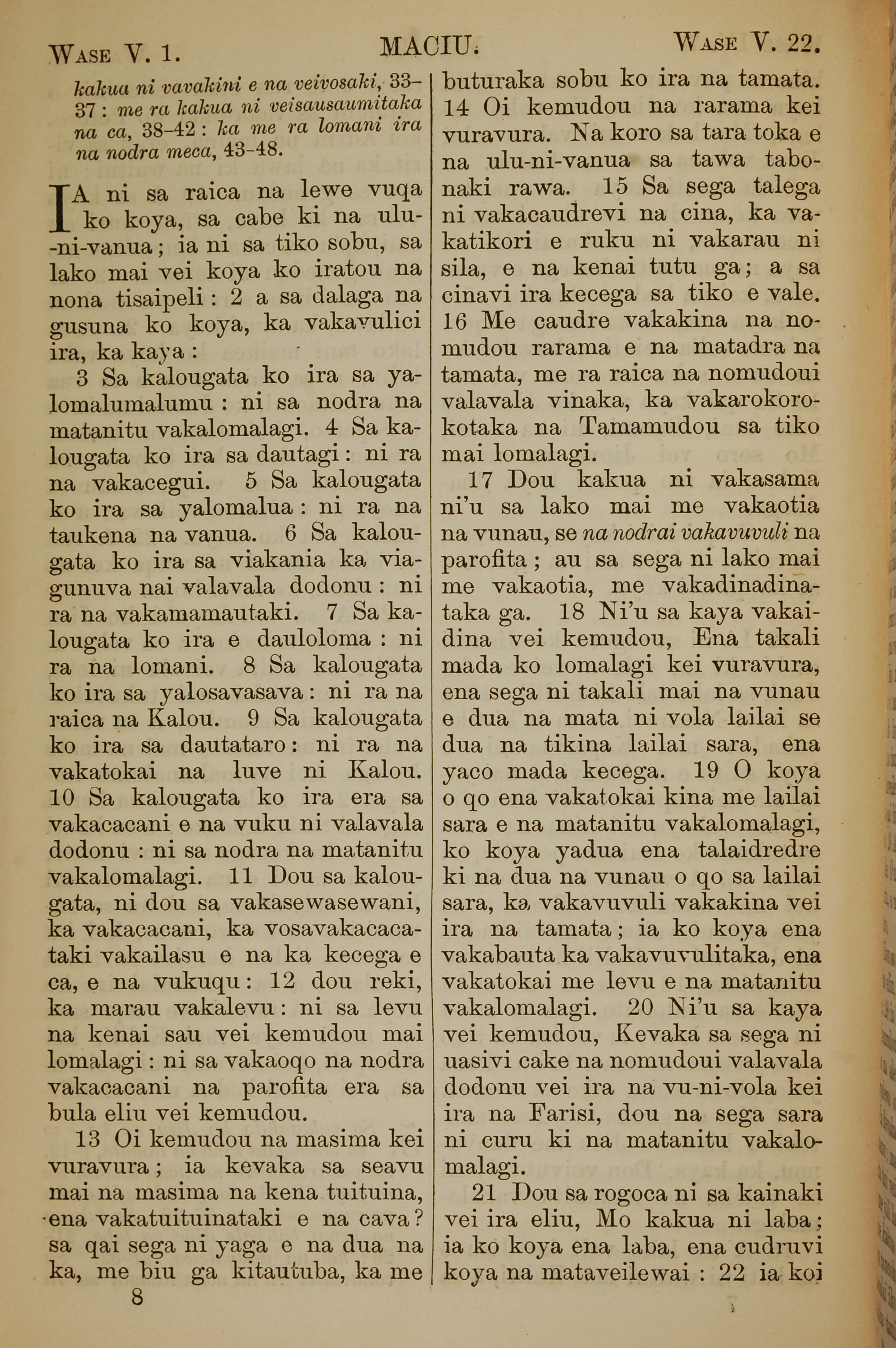 1858年斐濟文新約全書 馬太福音 5 章 1 節到 5 章 22 節