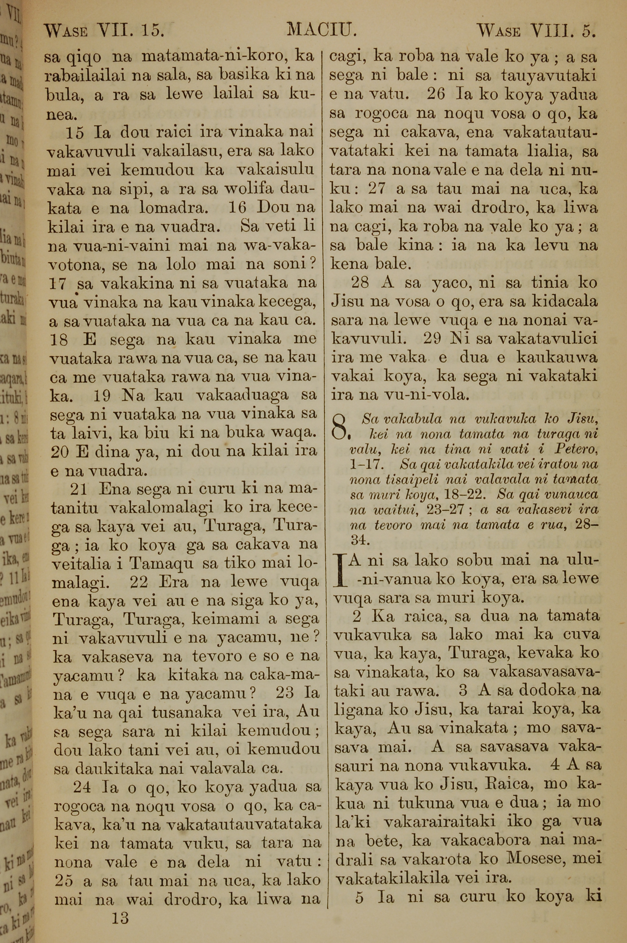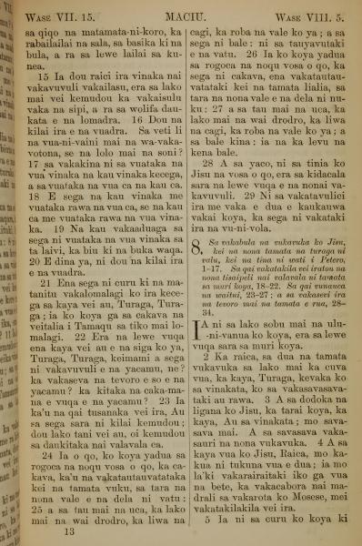 1858年斐濟文新約全書 馬太福音 7 章 14 節到 8 章 5 節