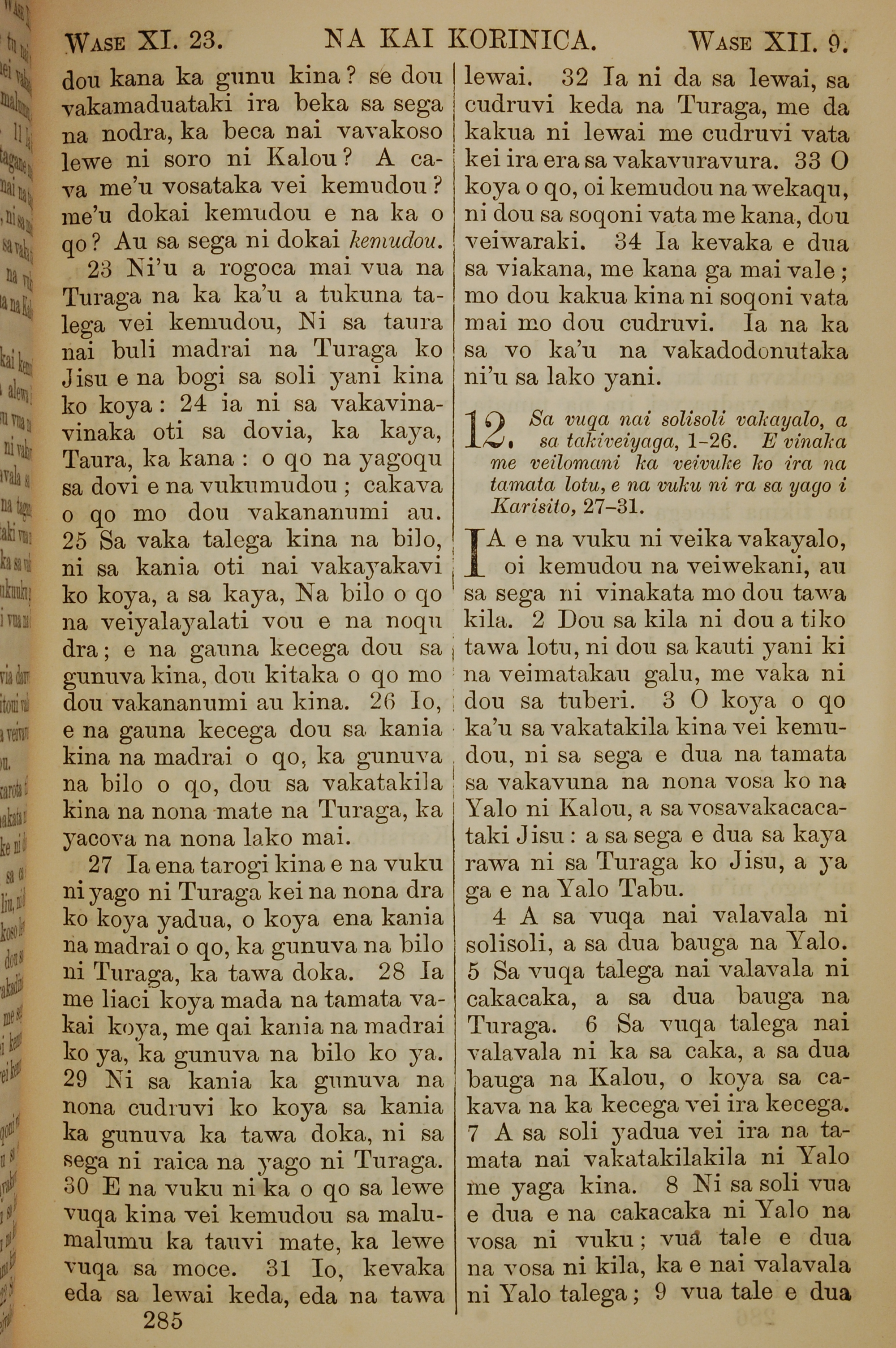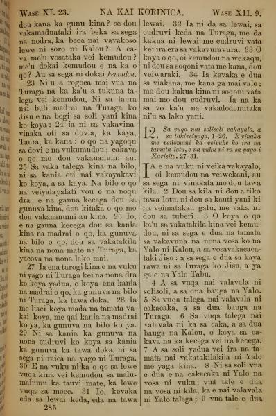 1858年斐濟文新約全書 哥林多前書 11 章 23 節到 12 章 9 節