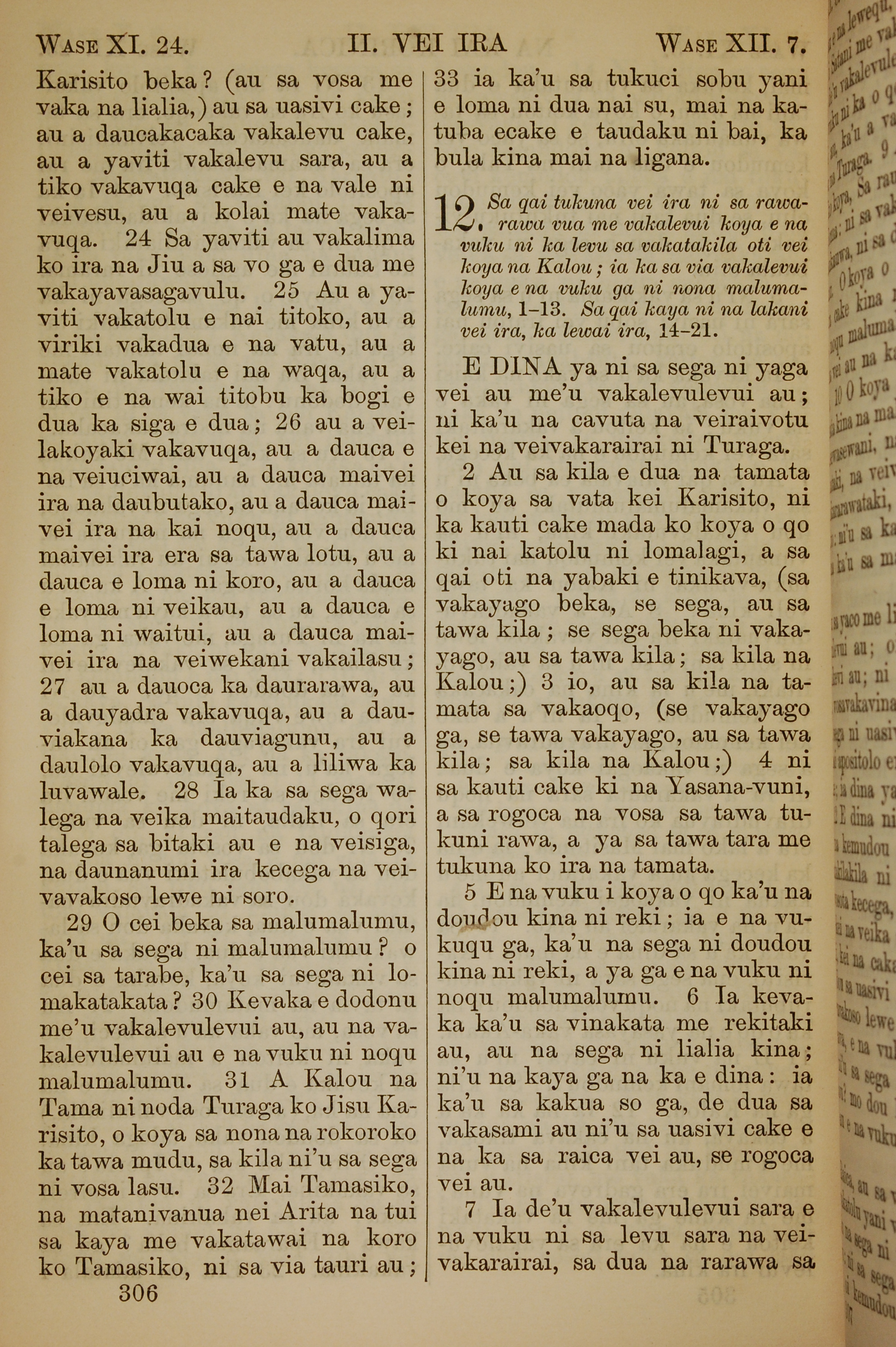 1858年斐濟文新約全書 哥林多後書 11 章 24 節到 12 章 7 節