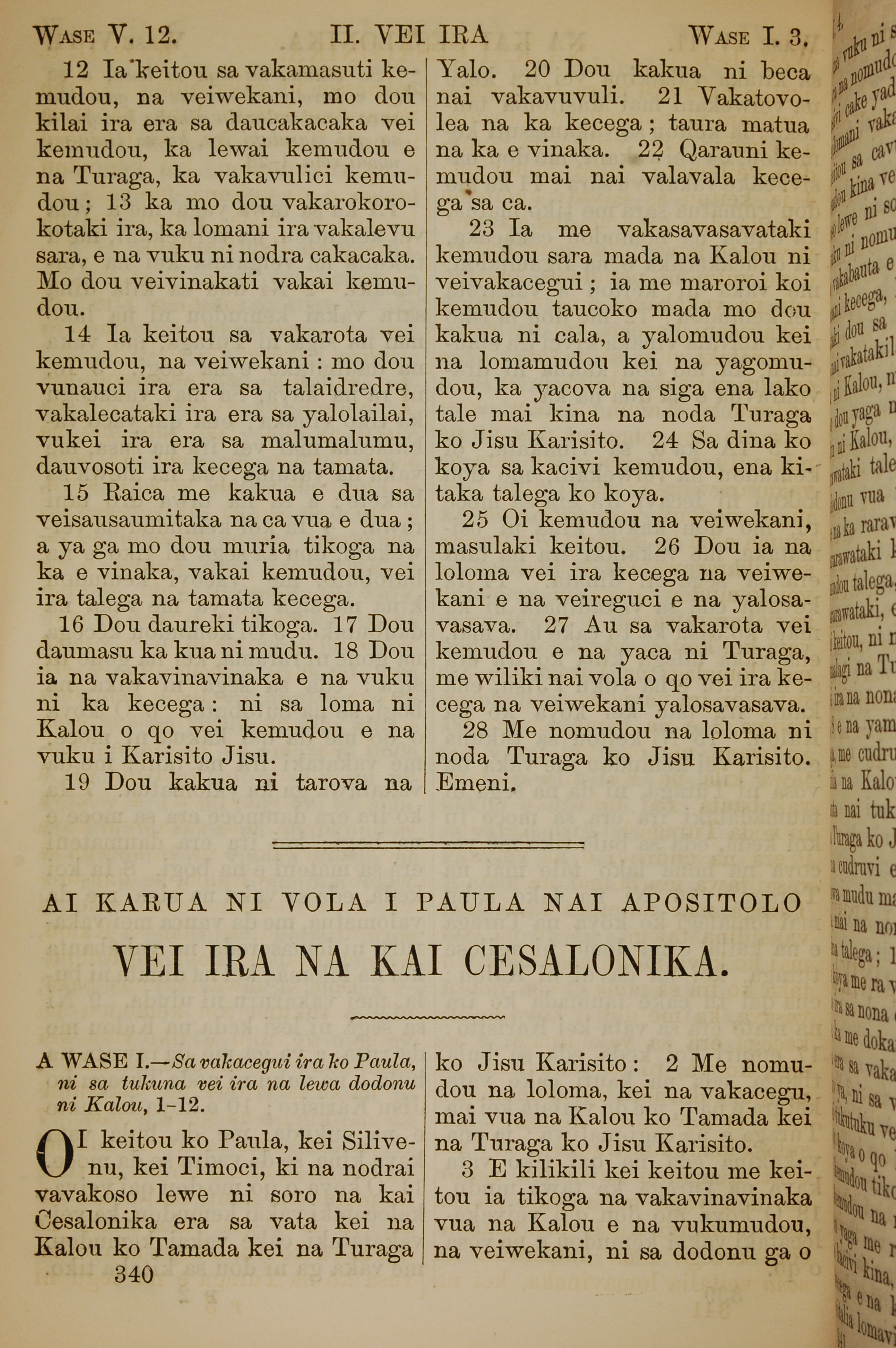 1858年斐濟文新約全書 帖撒羅尼迦後書 1 章 1 節到 1 章 3 節