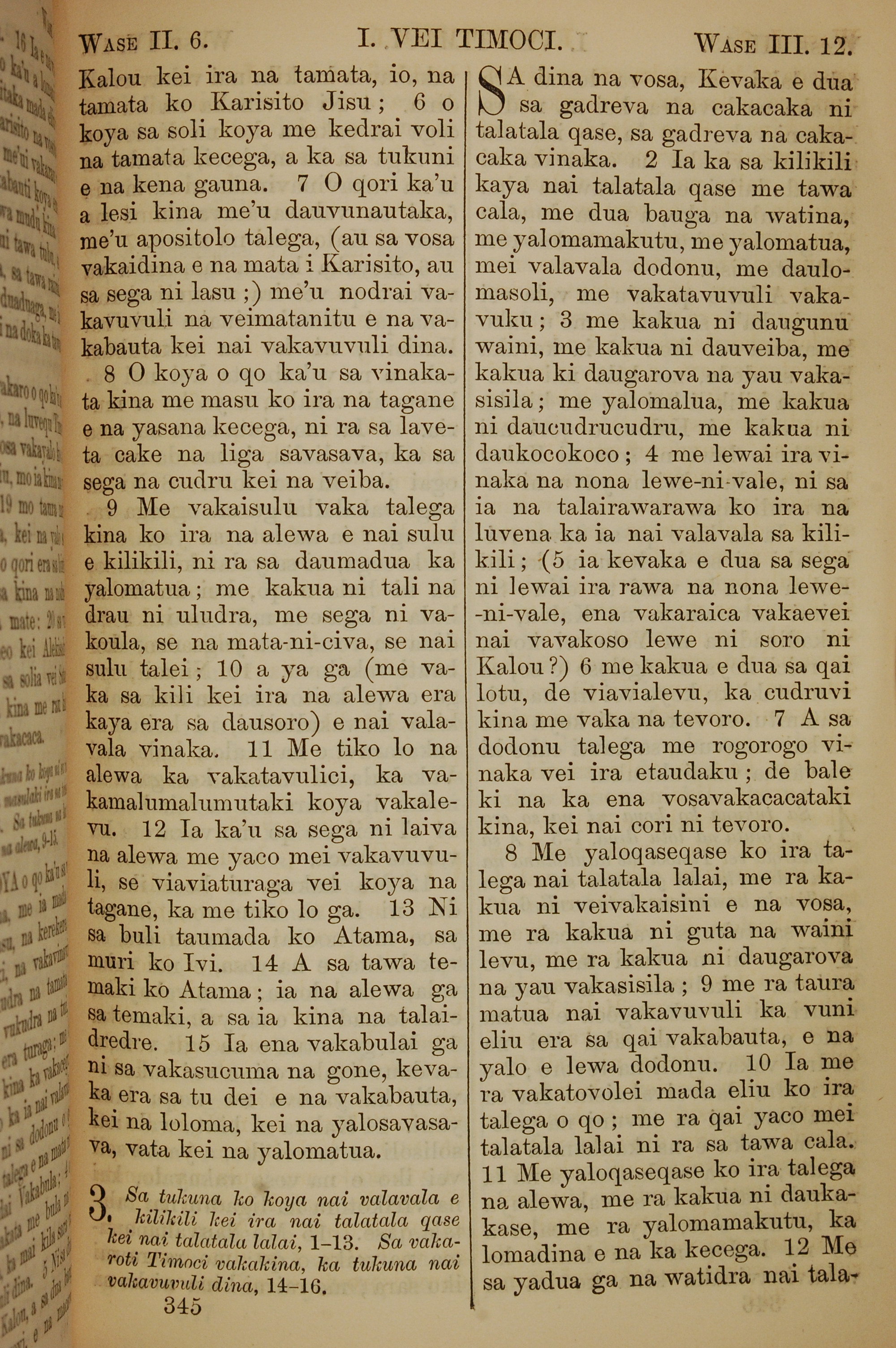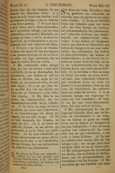 1858年斐濟文新約全書 提摩太前書 2 章 6 節到 3 章 12 節