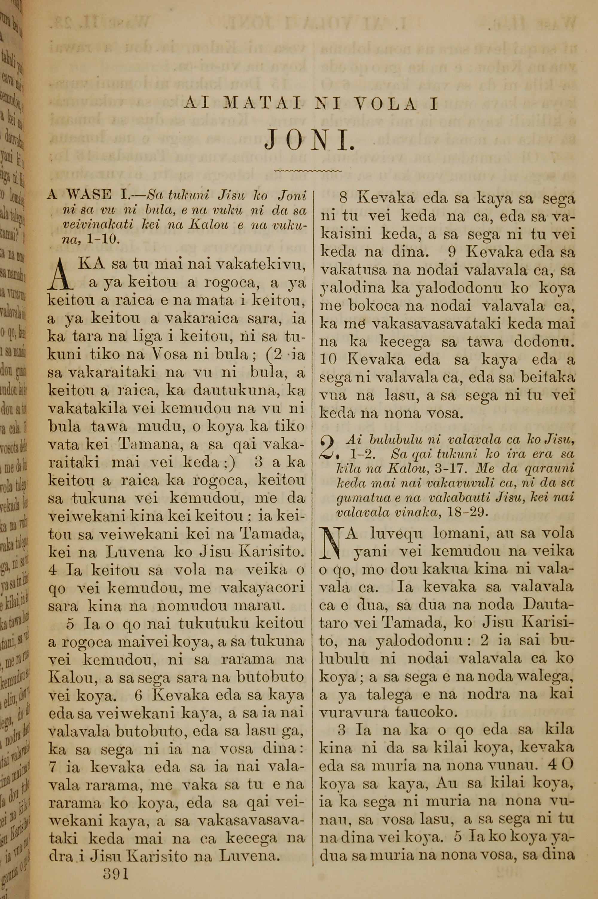 1858年斐濟文新約全書 約翰一書 1 章 1 節到 2 章 5 節
