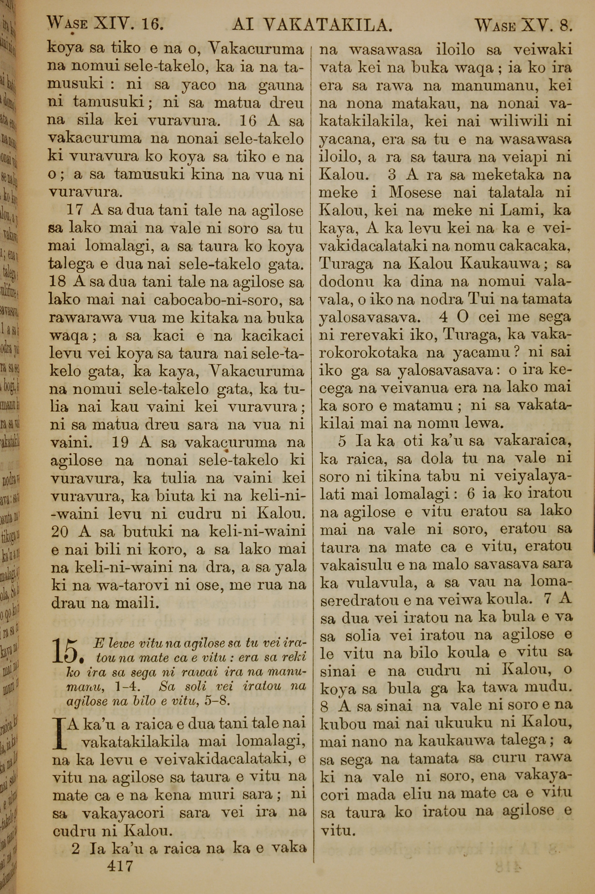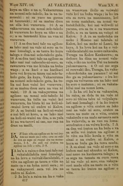 1858年斐濟文新約全書 啟示錄 14 章 16 節到 15 章 8 節