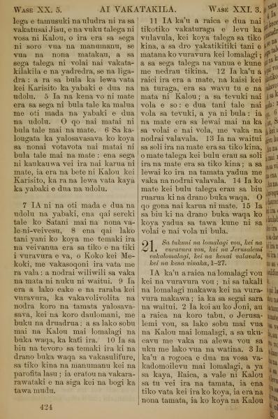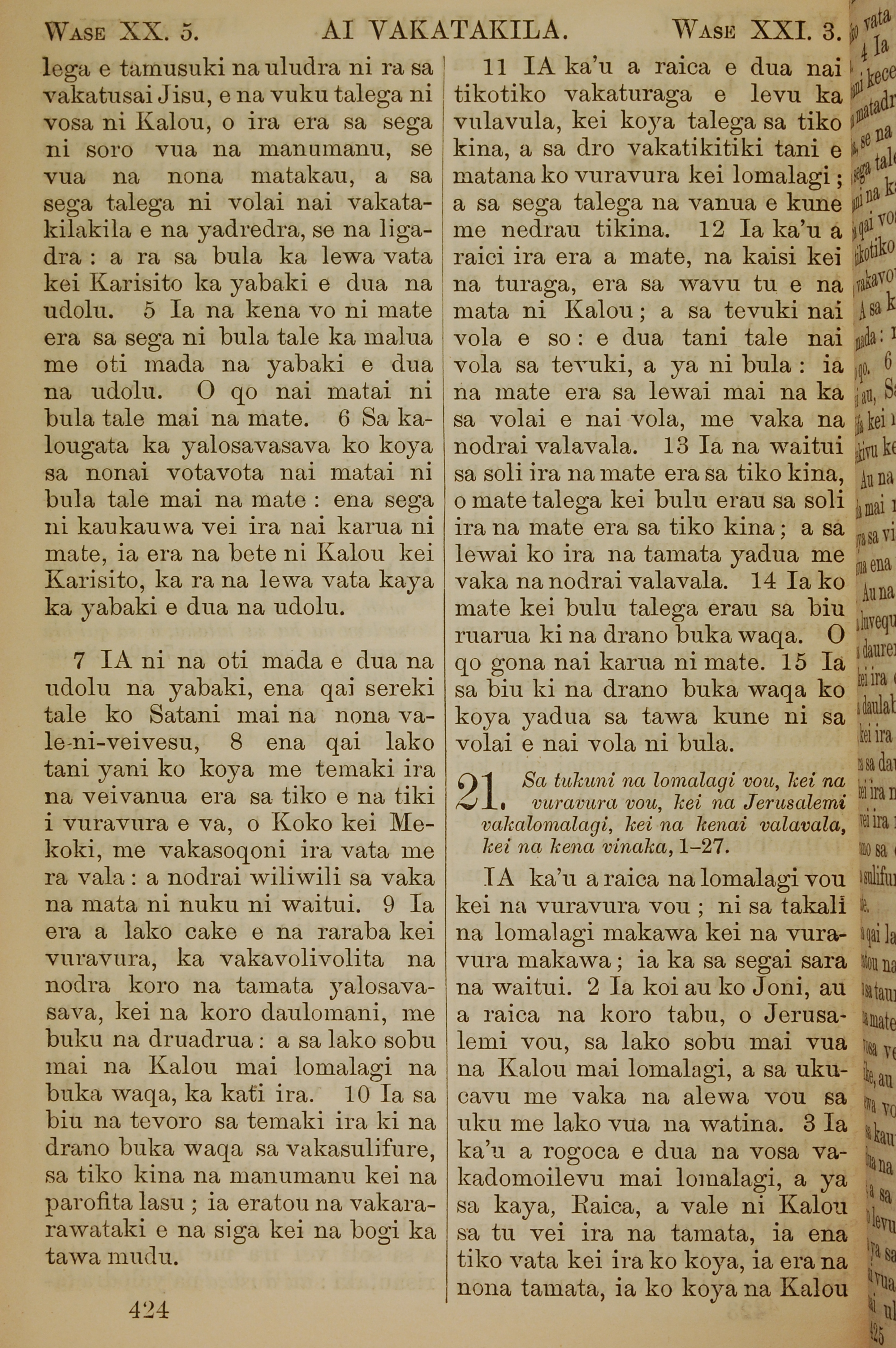 1858年斐濟文新約全書 啟示錄 20 章 5 節到 21 章 3 節