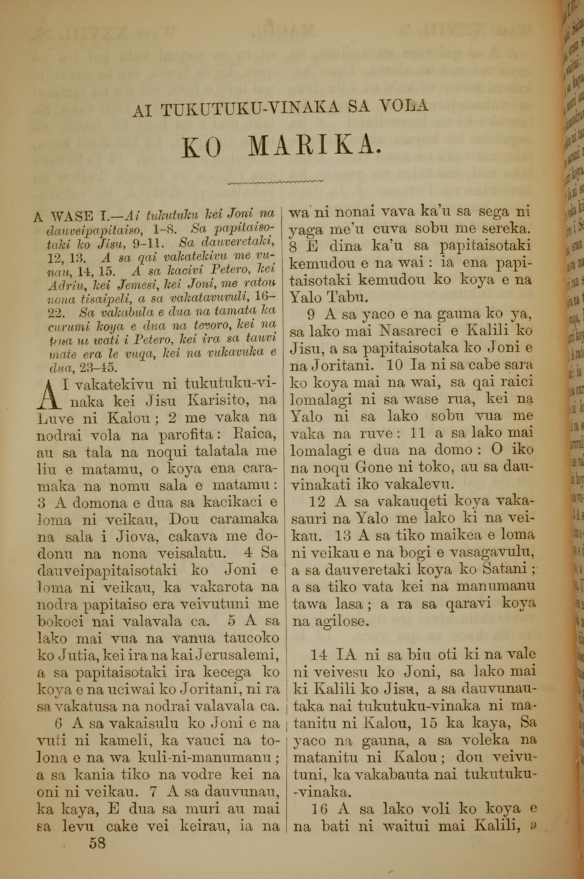1858年斐濟文新約全書 馬可福音 1 章 1 節到 1 章 16 節