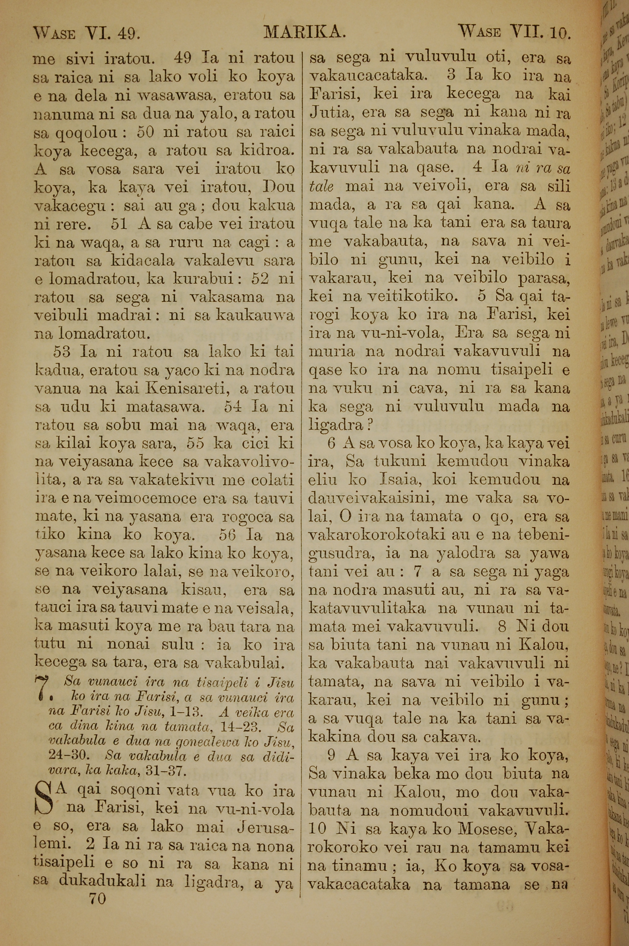 1858年斐濟文新約全書 馬可福音 6 章 49 節到 7 章 10 節