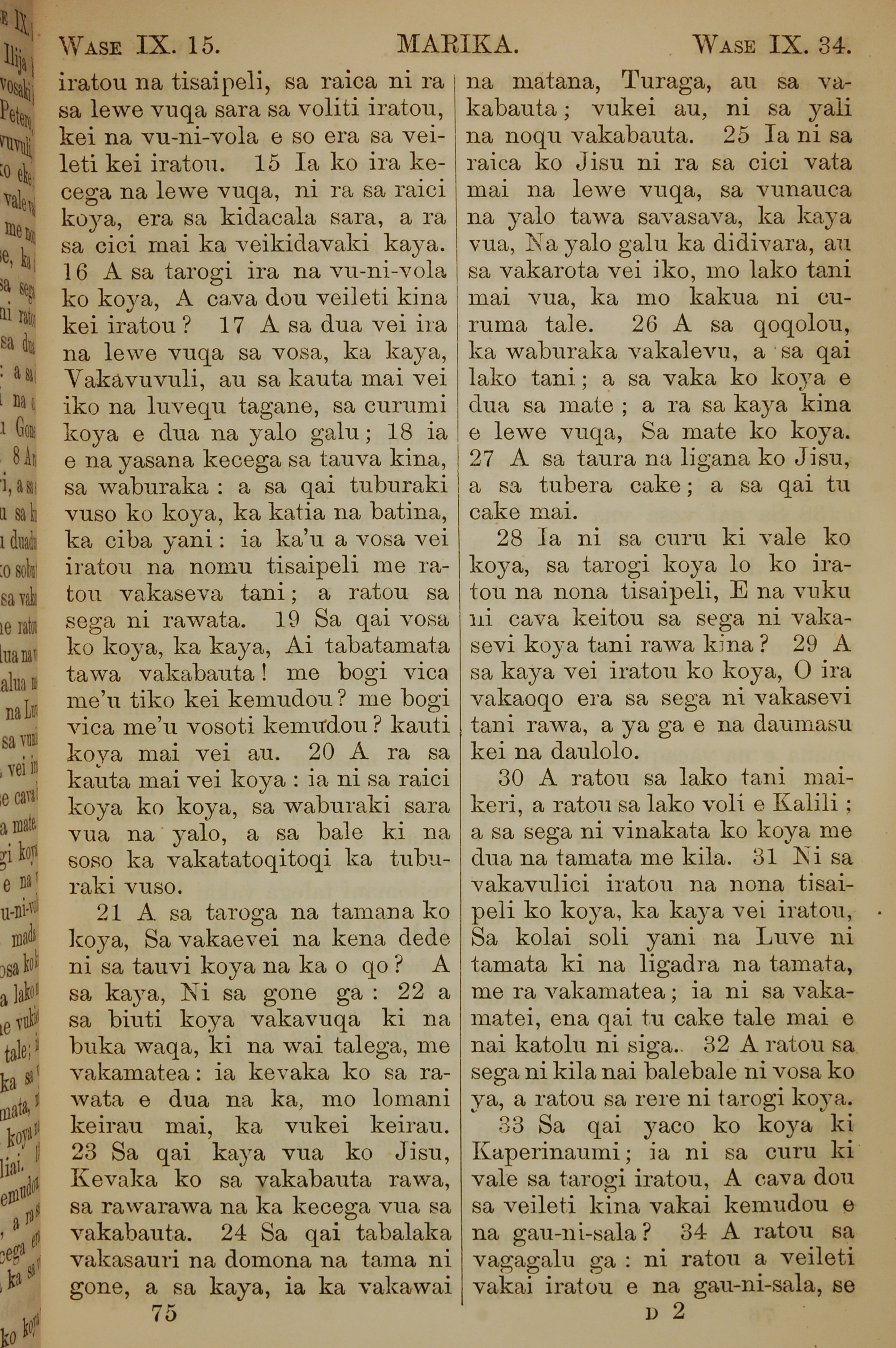 1858年斐濟文新約全書 馬可福音 9 章 15 節到 9 章 34 節