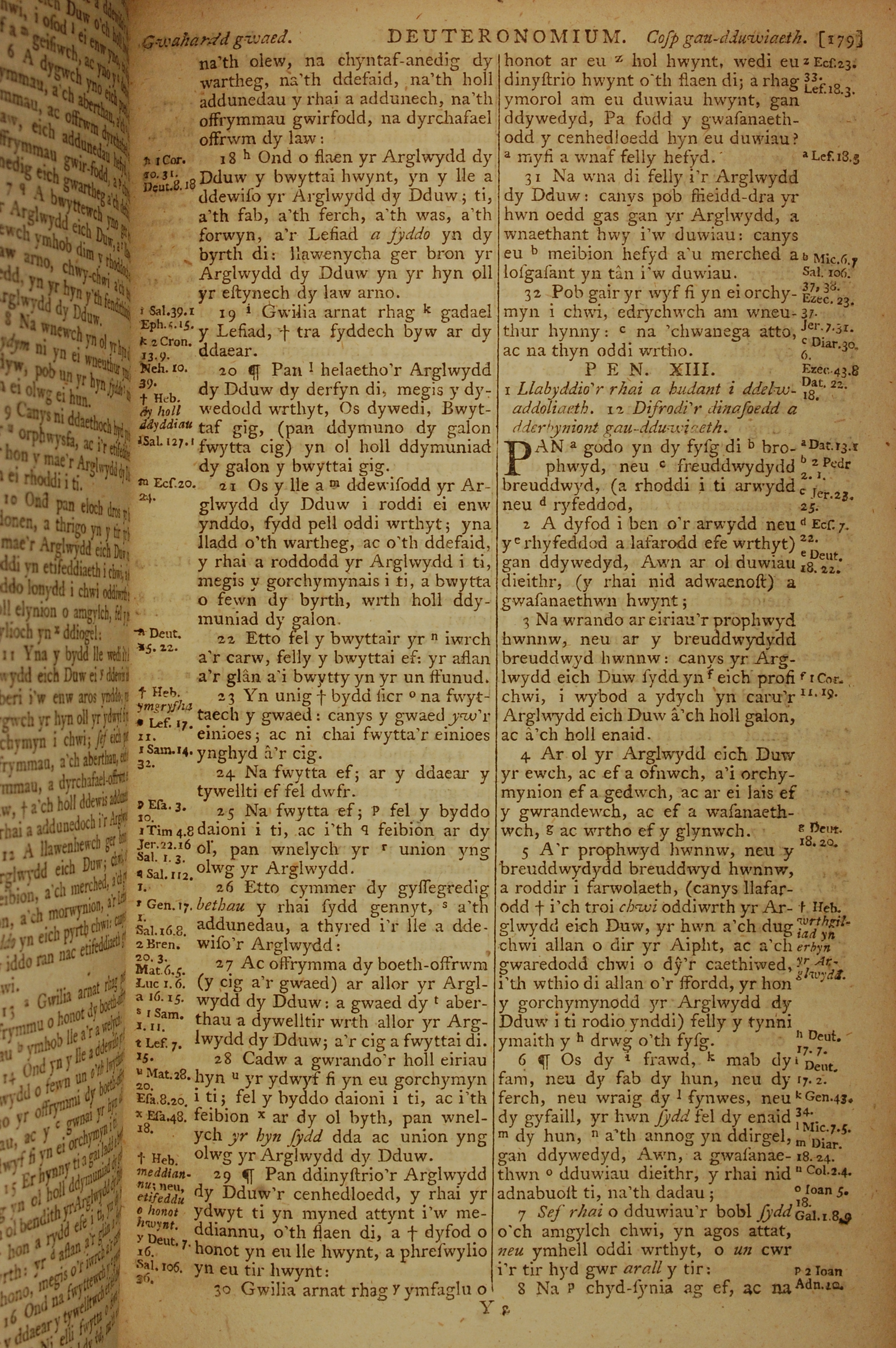 1796年威爾斯文新舊約全書 申命記 12 章 18 節到 13 章 8 節