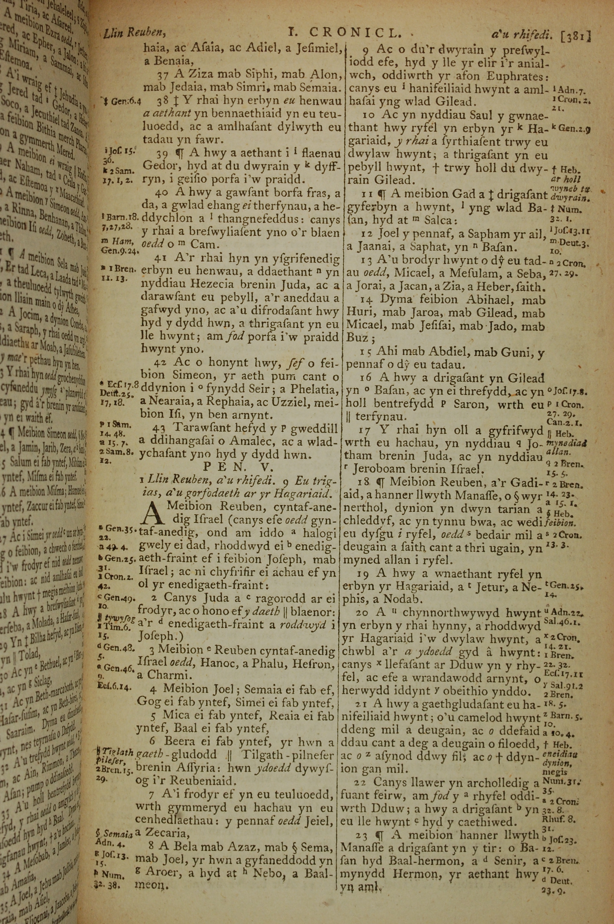 1796年威爾斯文新舊約全書 歷代志上 4 章 37 節到 5 章 23 節