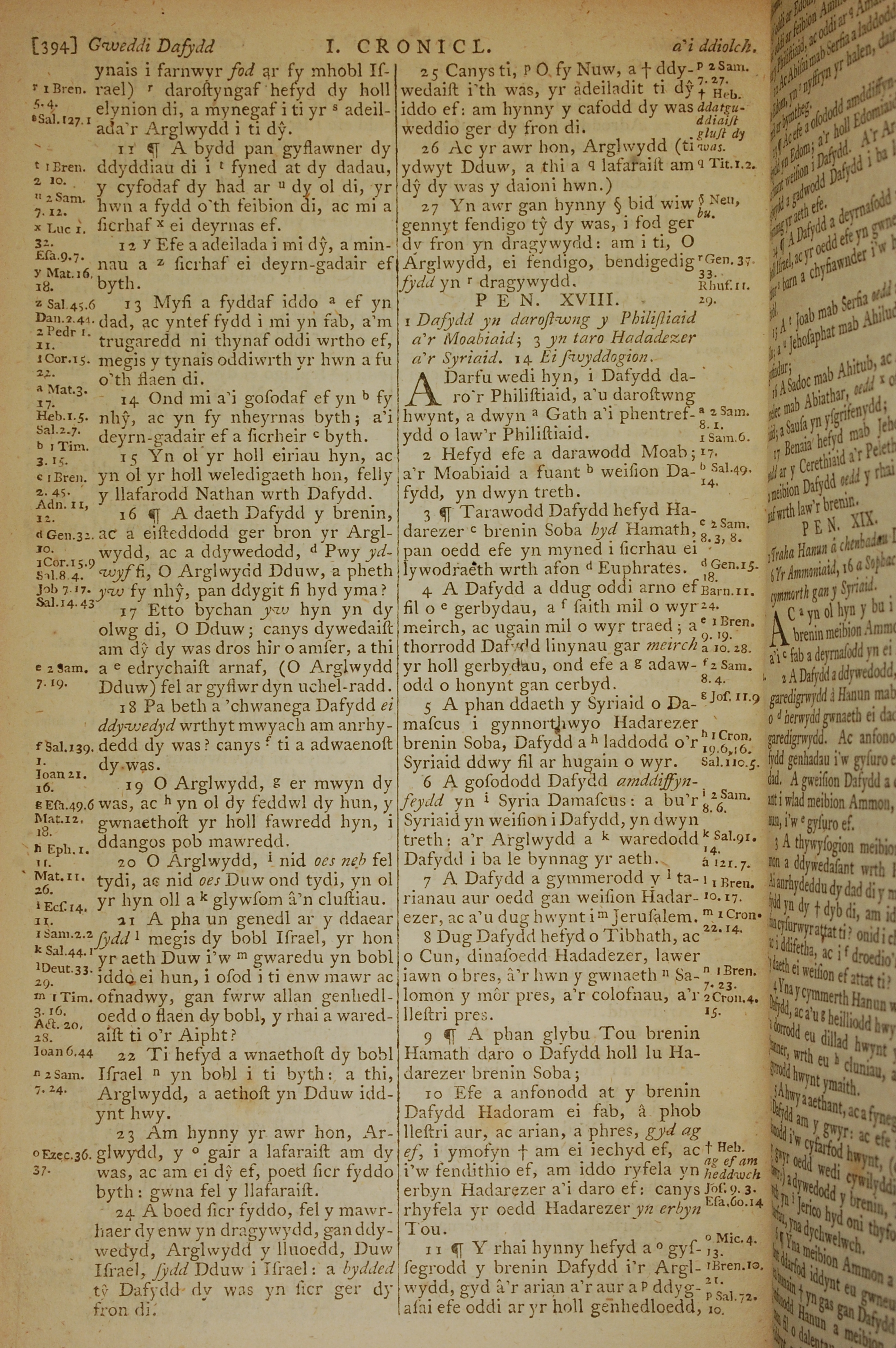 1796年威爾斯文新舊約全書 歷代志上 17 章 11 節到 18 章 11 節