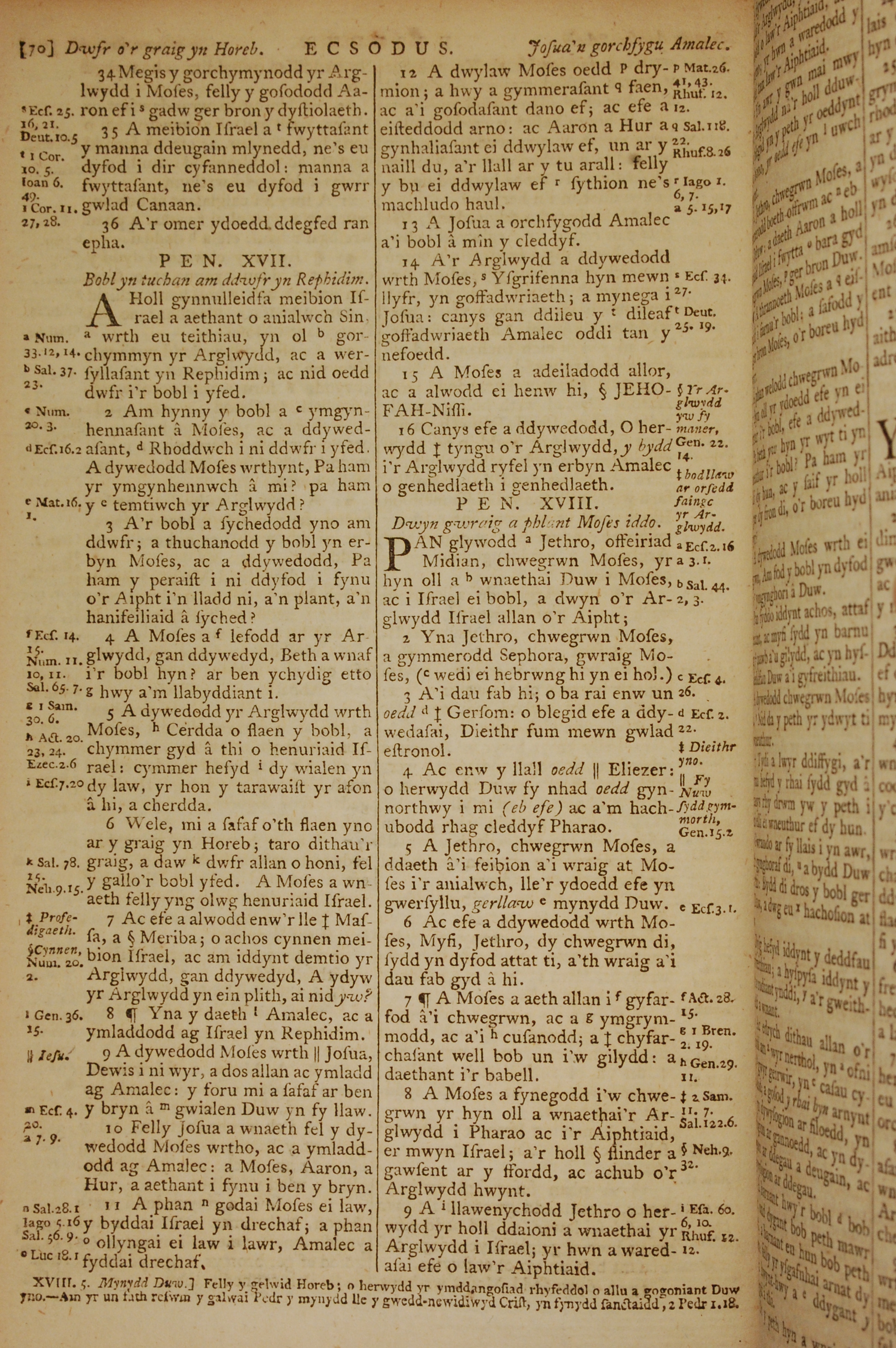 1796年威爾斯文新舊約全書 出埃及記 16 章 34 節到 18 章 9 節