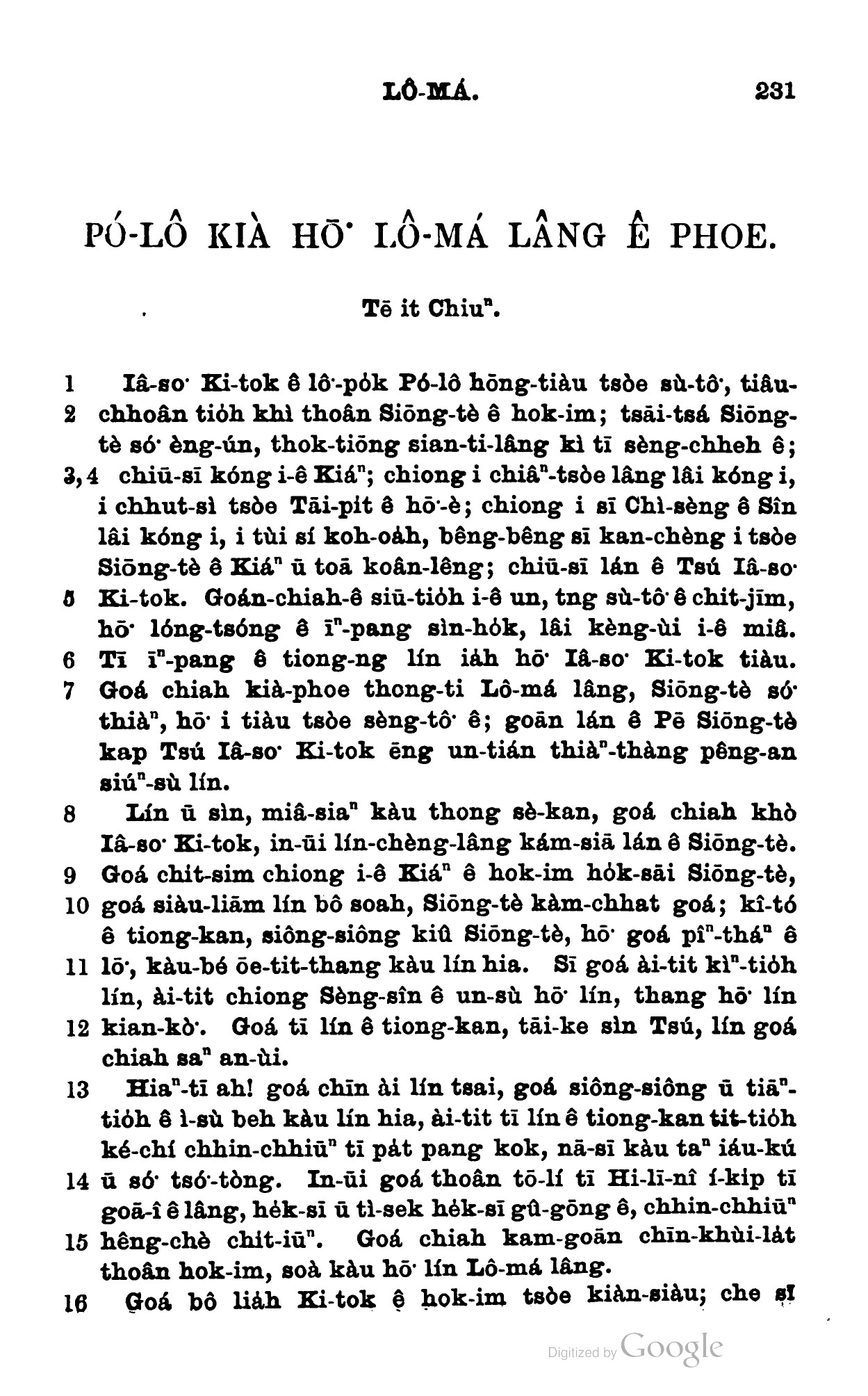 1898年新約全書 羅馬書 1 章 1 節到 1 章 16 節