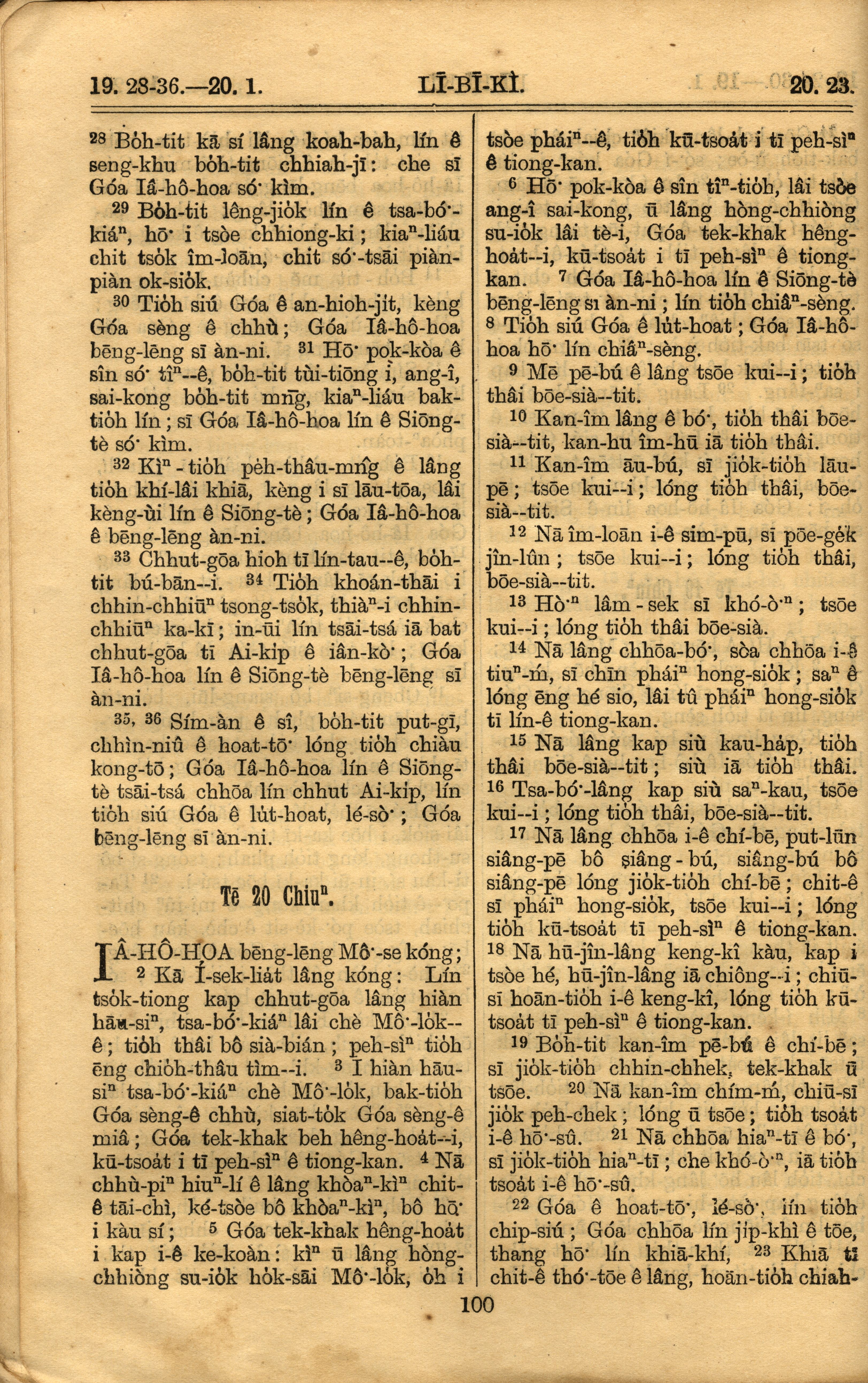 1921年羅馬字舊約全書 利未記 19 章 28 節到 20 章 23 節