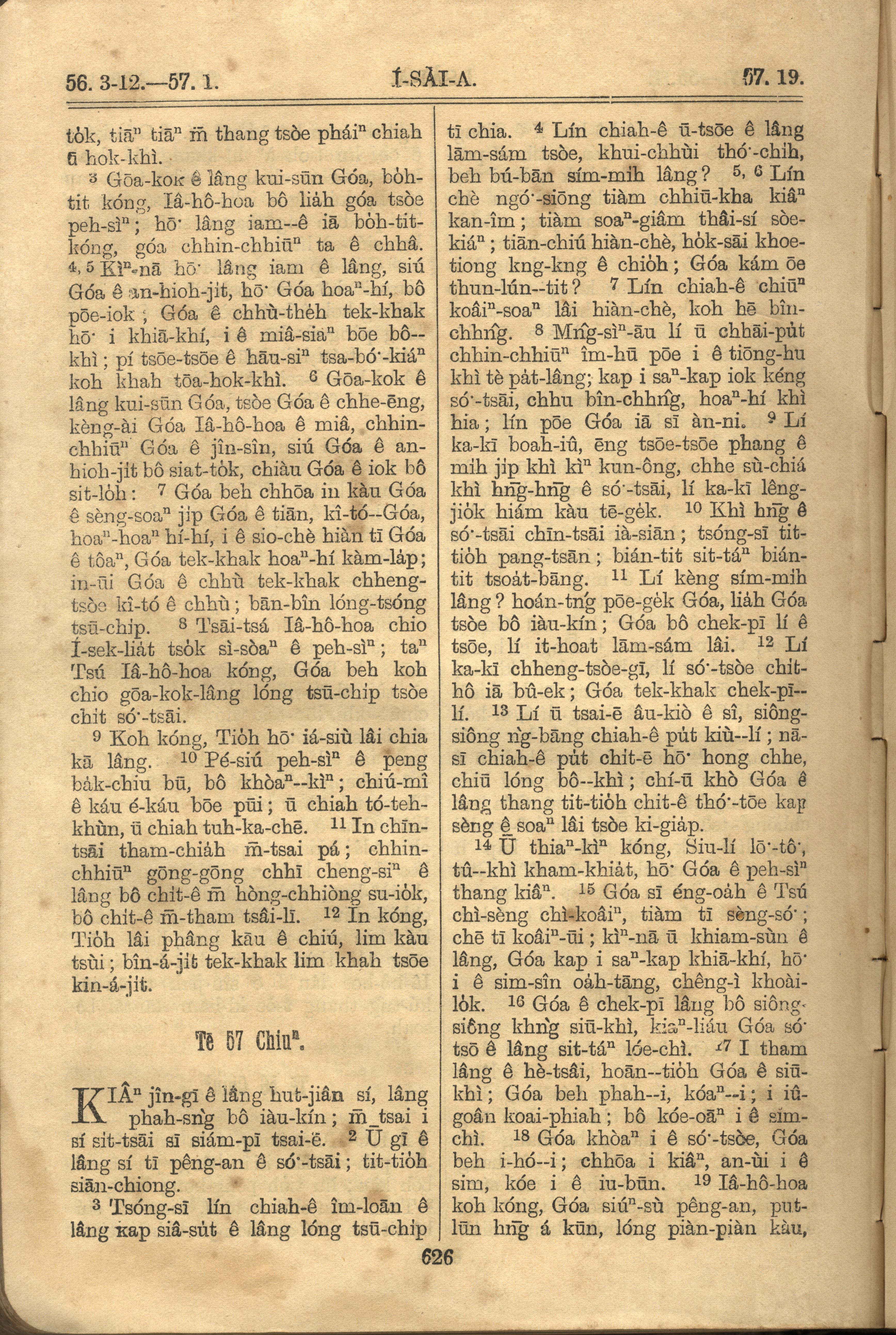 1921年羅馬字舊約全書 以賽亞書 56 章 3 節到 57 章 19 節