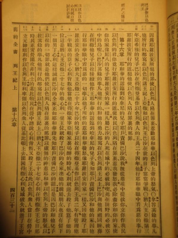 1919年官話和合本 列王紀上 15 章 31 節到 16 章 18 節