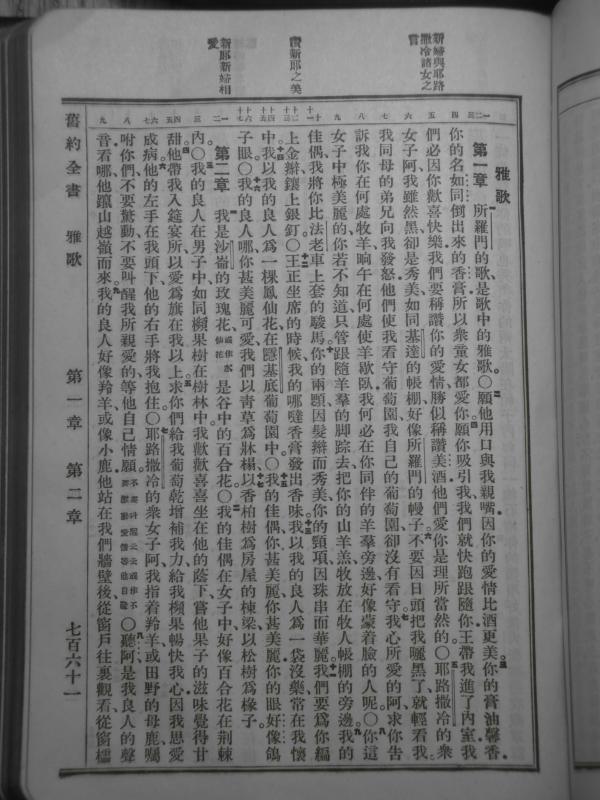 1919年官話和合本 雅歌 1 章 1 節到 2 章 9 節