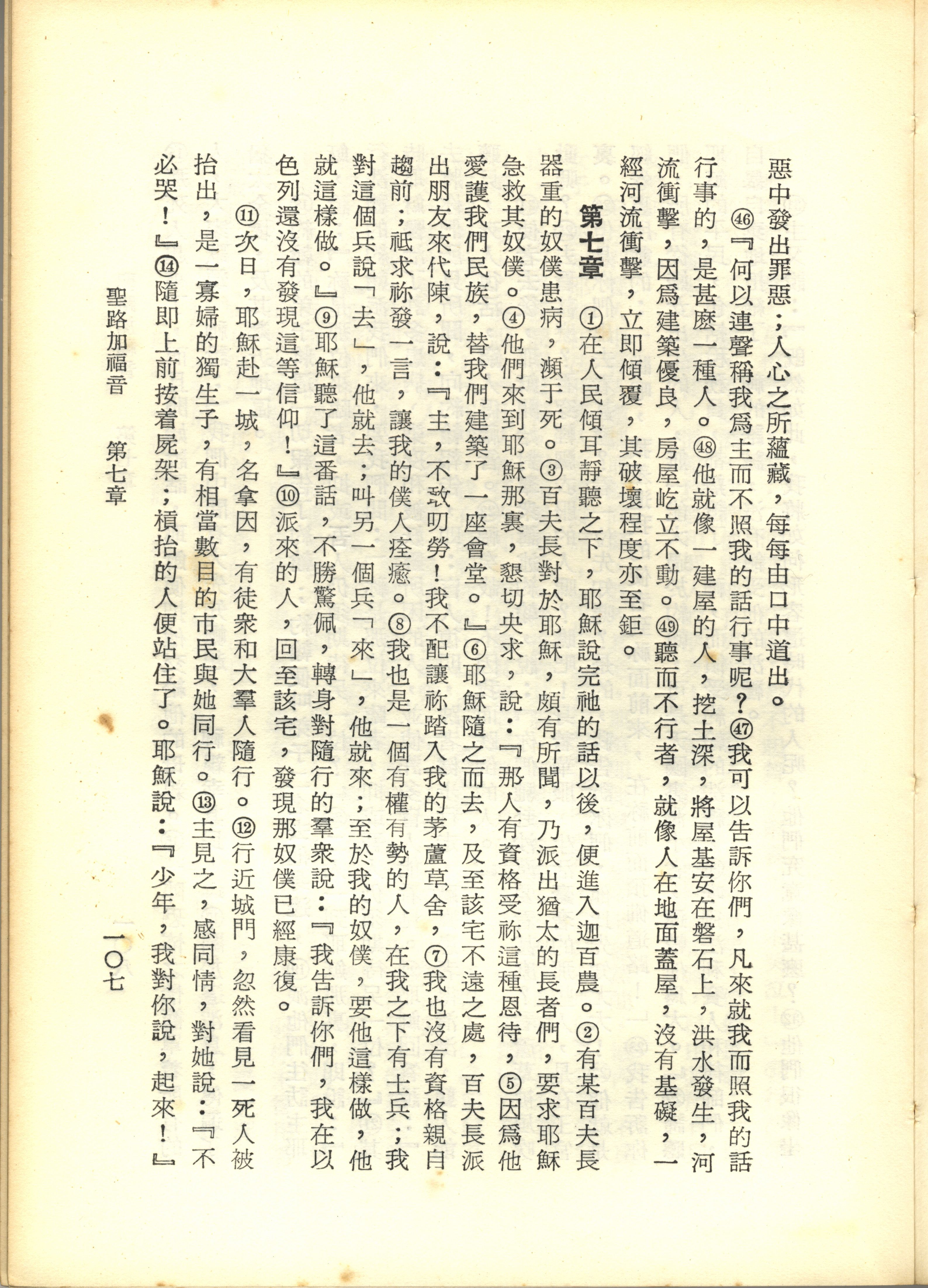 1967年新譯新約全集 路加福音 6 章 46 節到 7 章 14 節